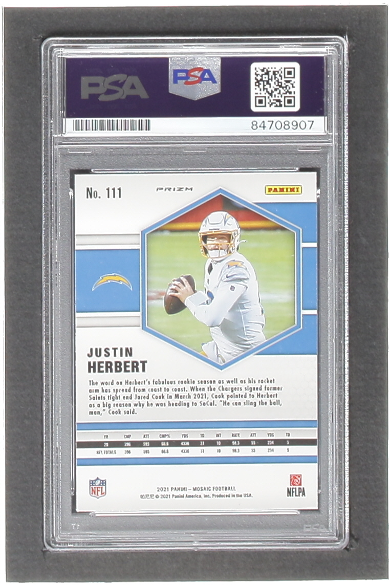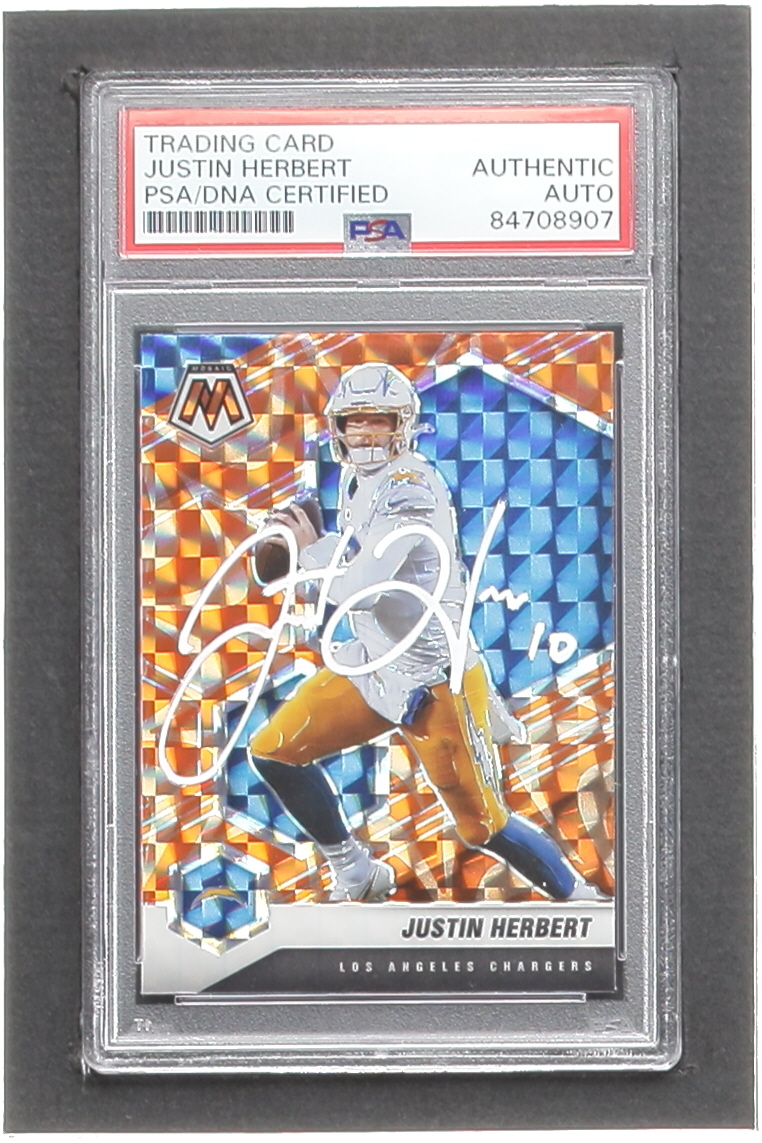 Justin Herbert Signed 2021 Panini Mosaic Mosaic Reactive Orange #111 (PSA)