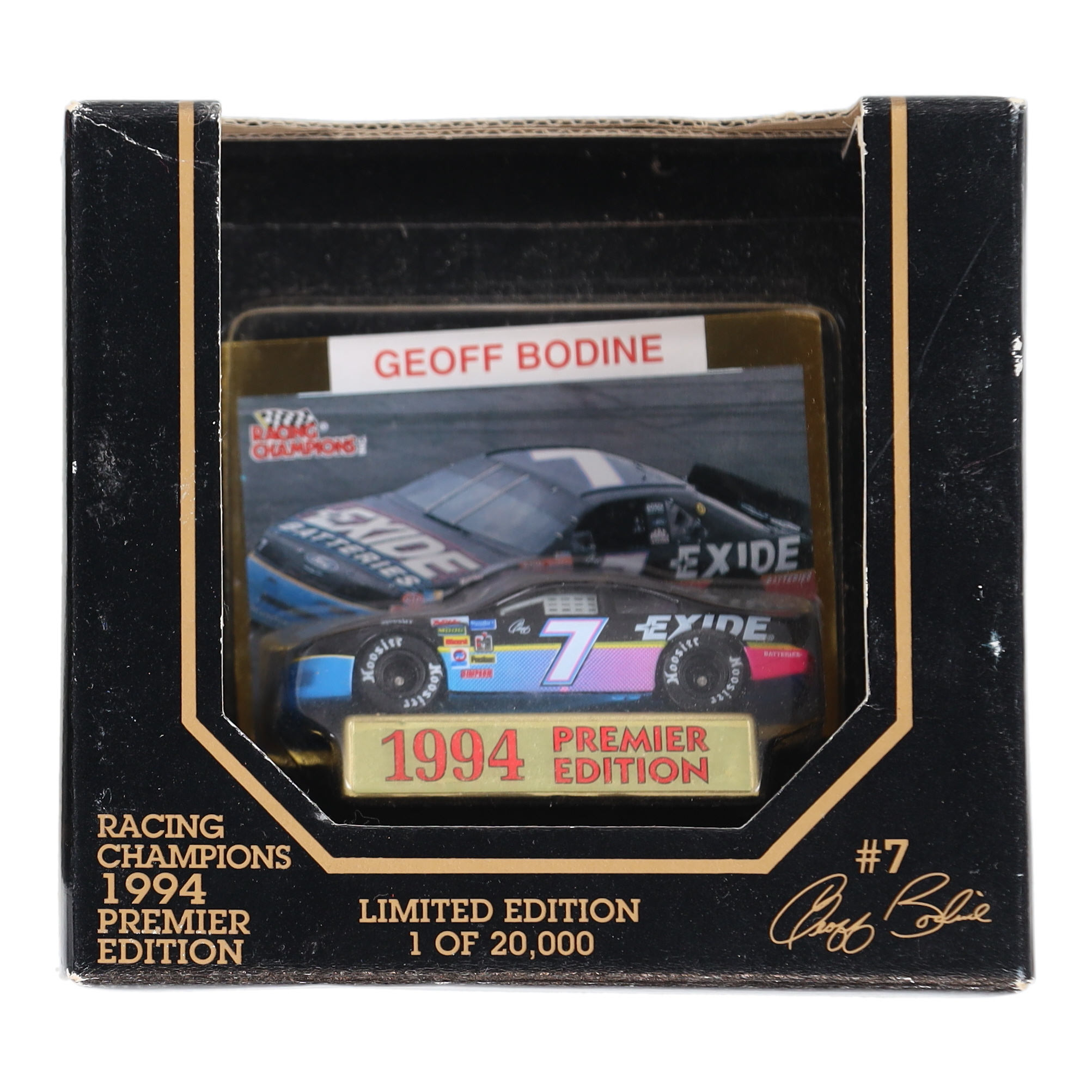 1994 Geoff Bodine Exide Batteries Racing Champions premier Edition 1:64 scale diecast car. Includes original packaging as shown. Diecast is limited edition 1 of 20,000. Please note item is not signed.