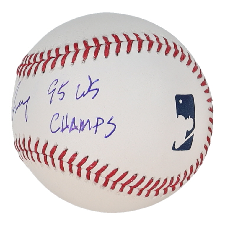 Greg Maddux Signed OML Baseball with Inscribed "95 WS Champs" (Beckett)