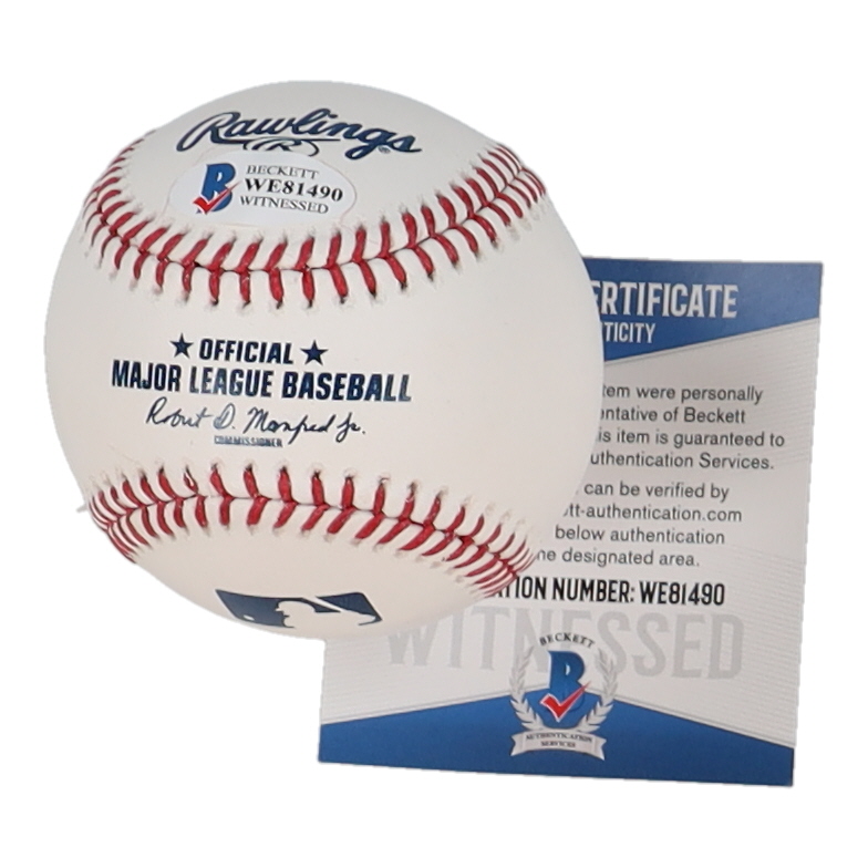 The autograph includes an official Beckett Authentication Services serially-numbered hologram and matching COA for authenticity purposes. The signing of this item was witnessed by Beckett.