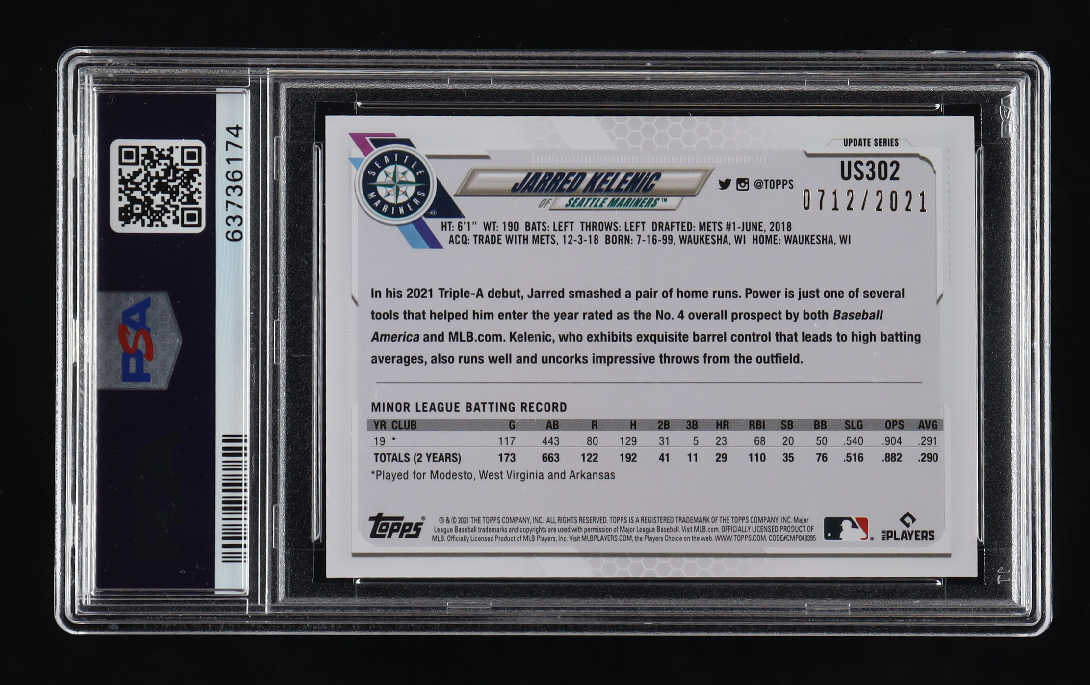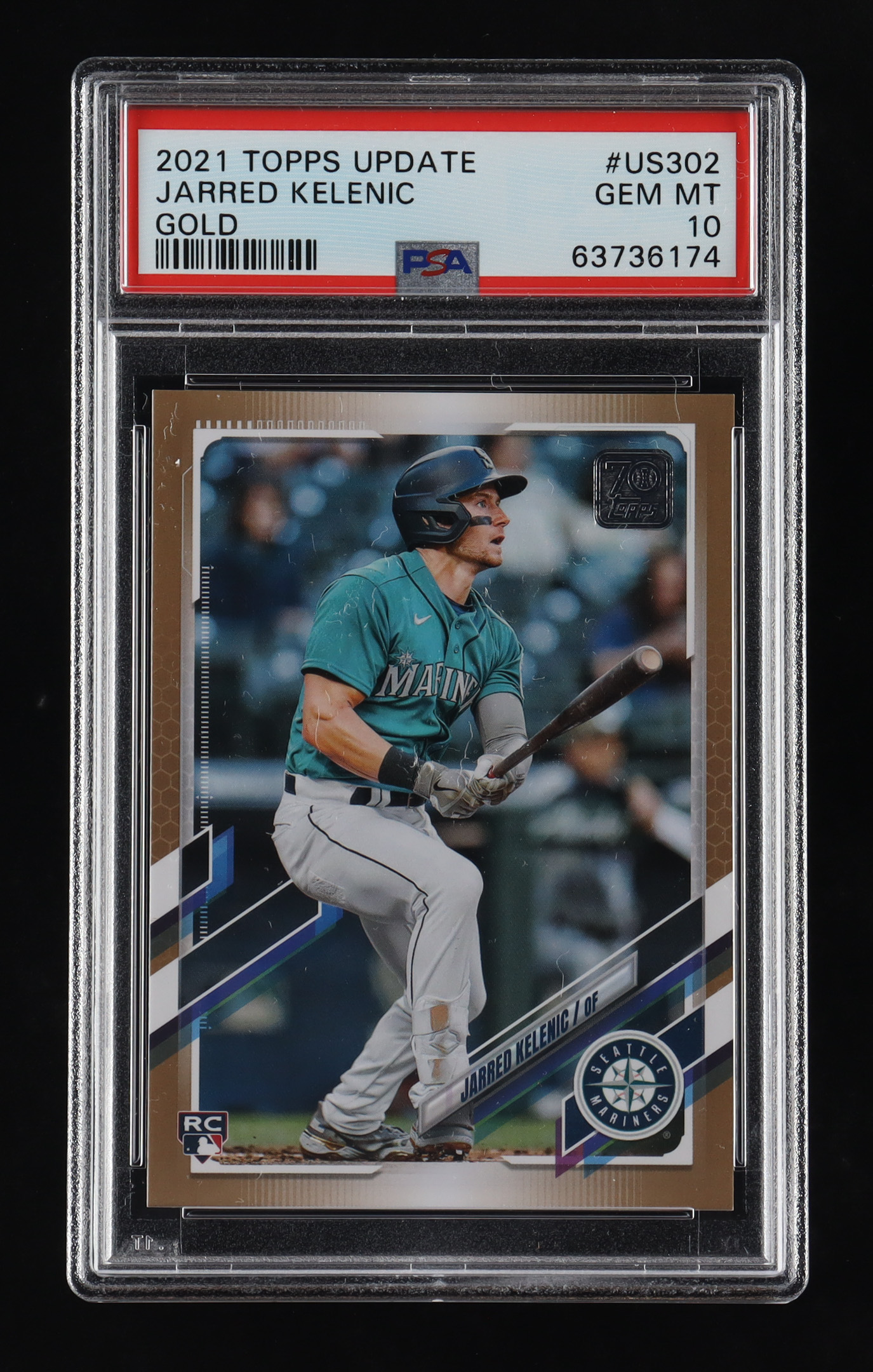 Jarred Kelenic 2021 Topps Update Gold #US302 RC #0712/2021 (PSA 10)
