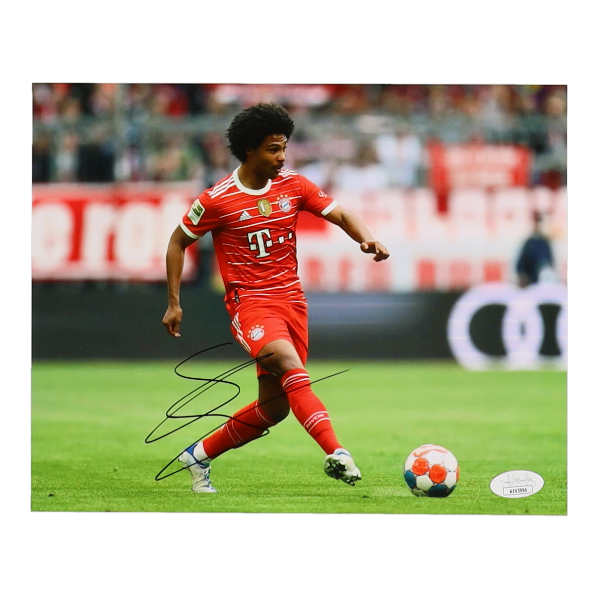 Photo measures 8" x 10" in size and has been hand-signed by Serge Gnabry (Bayern Munich).