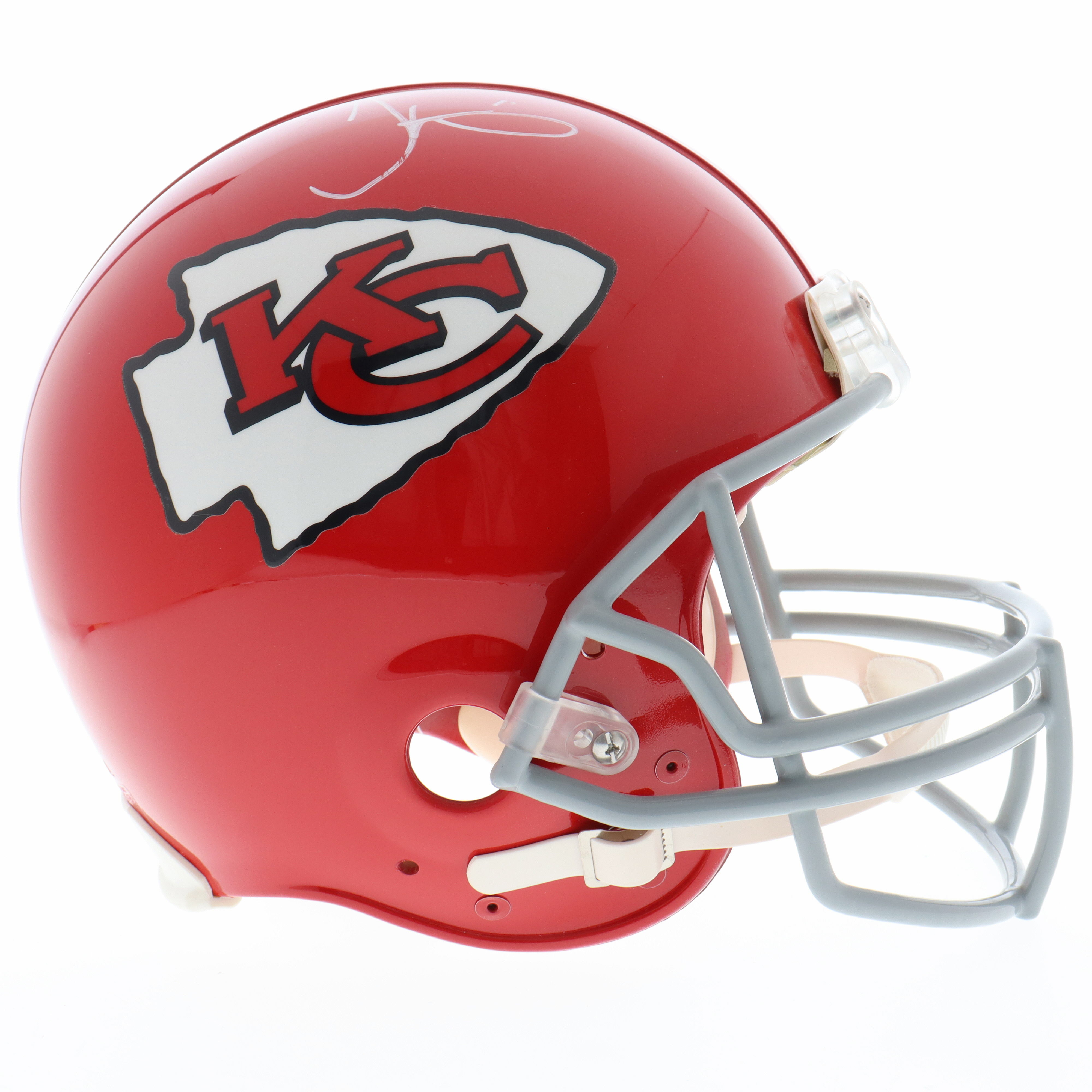 Riddell Kansas City Chiefs full-size authentic on-field helmet. Hand-signed by Tyreek Hill.