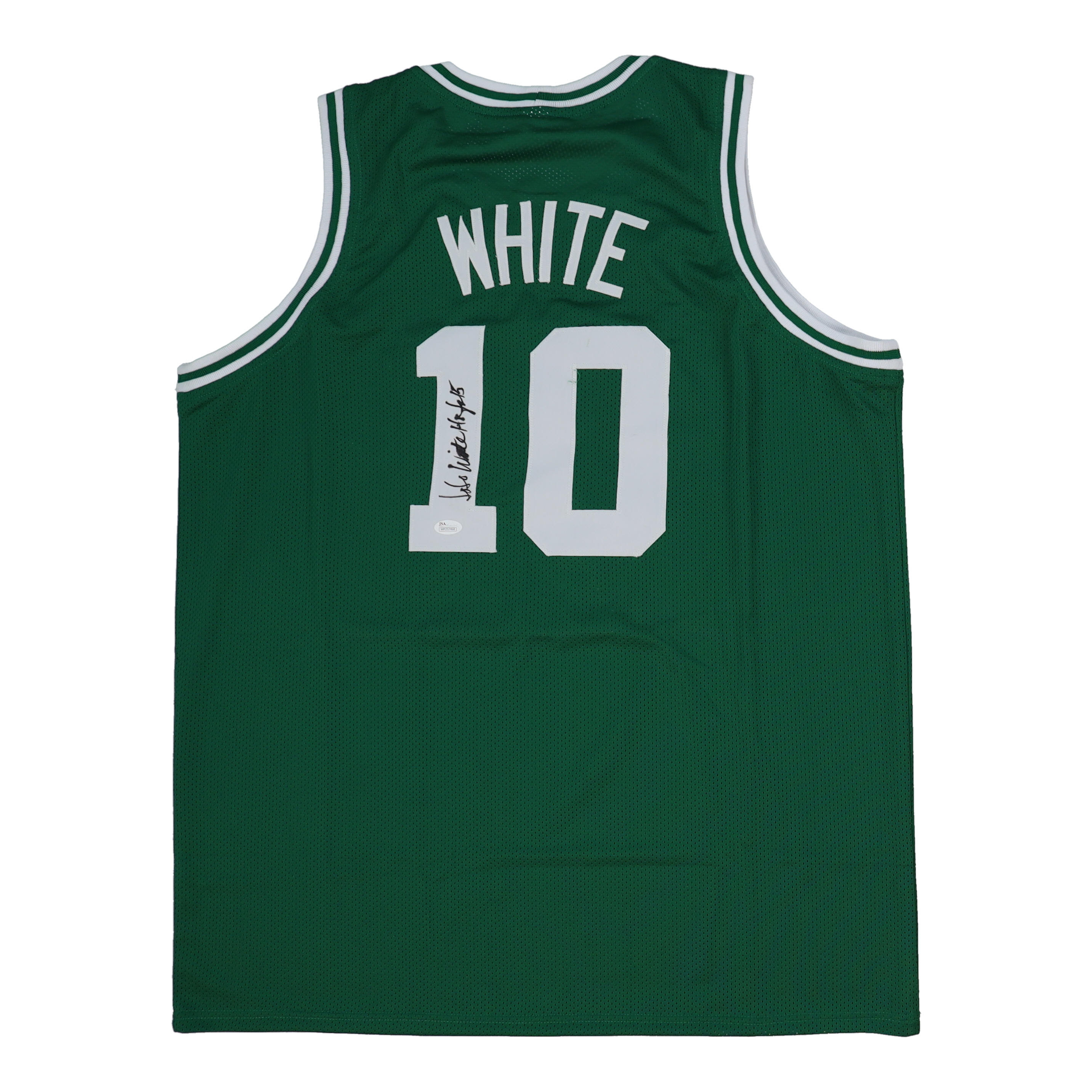 Custom jersey. Everything is sewn on, size XL. Hand-signed and inscribed by Jo Jo White (D. 2018, HOF).