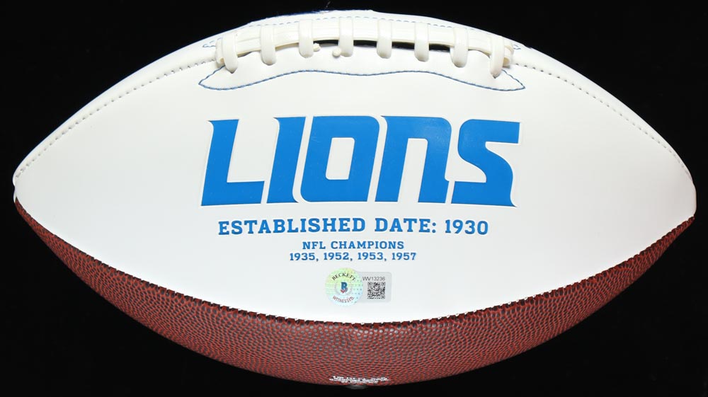 Detroit Lions Logo football has been hand-signed by Hendon Hooker.