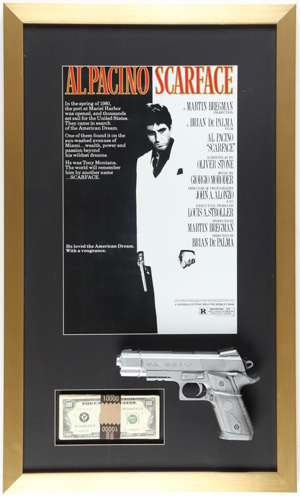 "Scarface" Custom Framed Movie Poster Display with Movie Prop Replica Money & Pistol