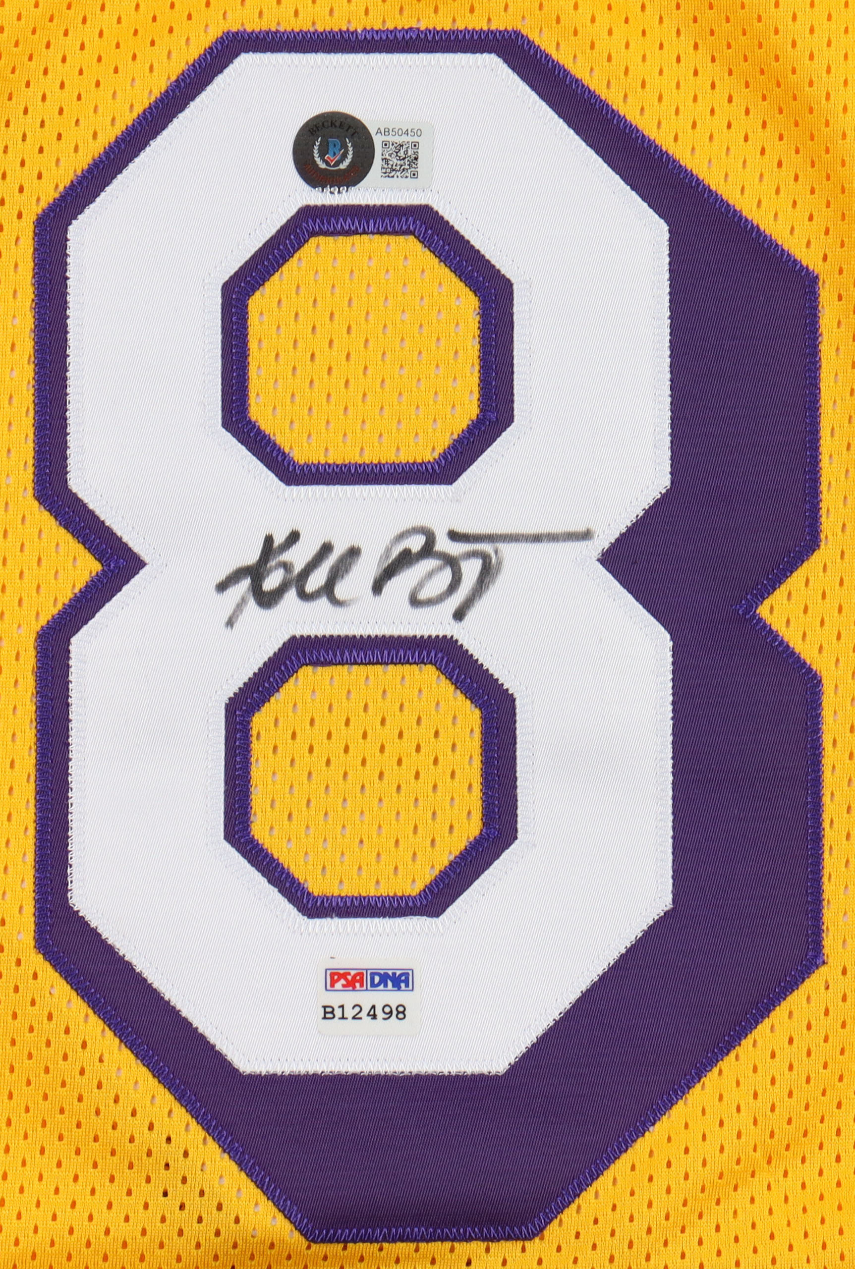 Custom jersey with everything sewn on, size XL. Hand-signed by Kobe Bryant (D. 2020, Los Angeles Lakers, HOF).