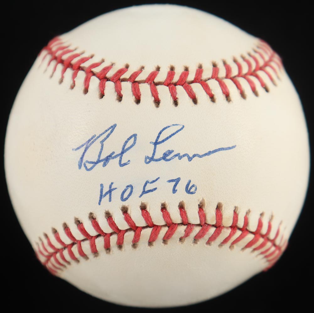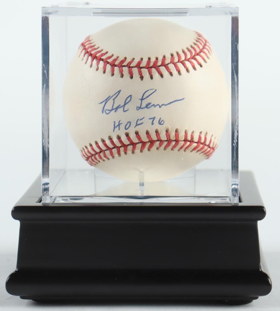 Bob Lemon Signed OAL Baseball Inscribed "HOF 76" in All Wood Display Case Baseball (PSA)