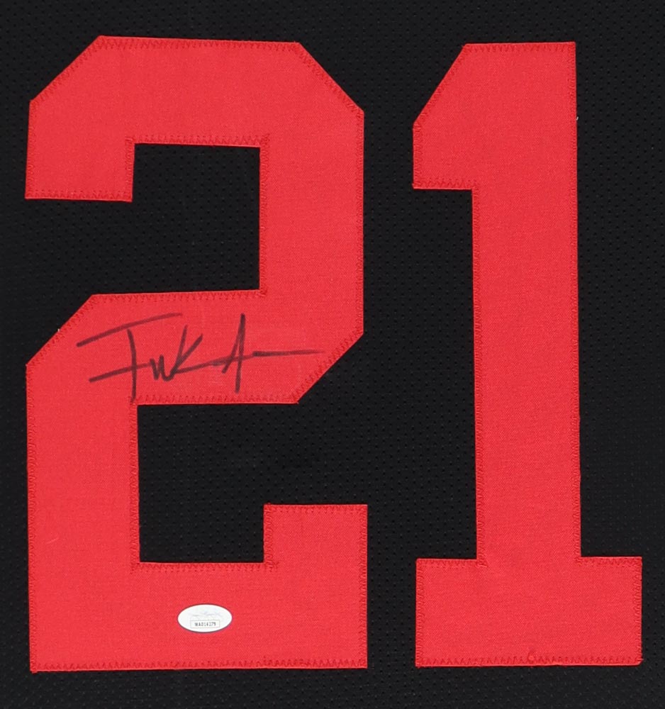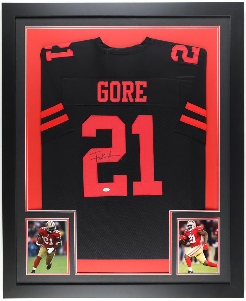 Custom framed display measures approximately 36" x 44" in size. Hand-signed by Frank Gore.