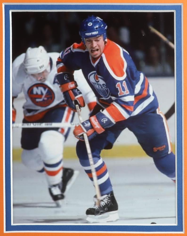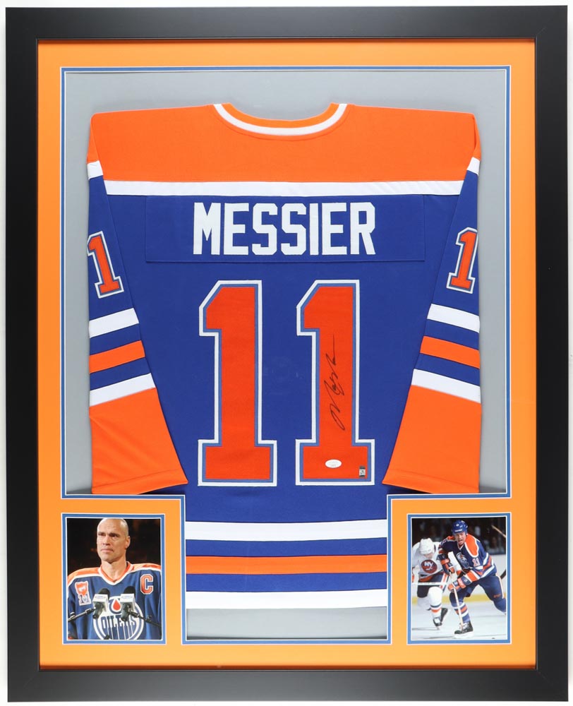 Custom framed display measures approximately 36" x 44" in size. Hand-signed by Mark Messier (HOF).
