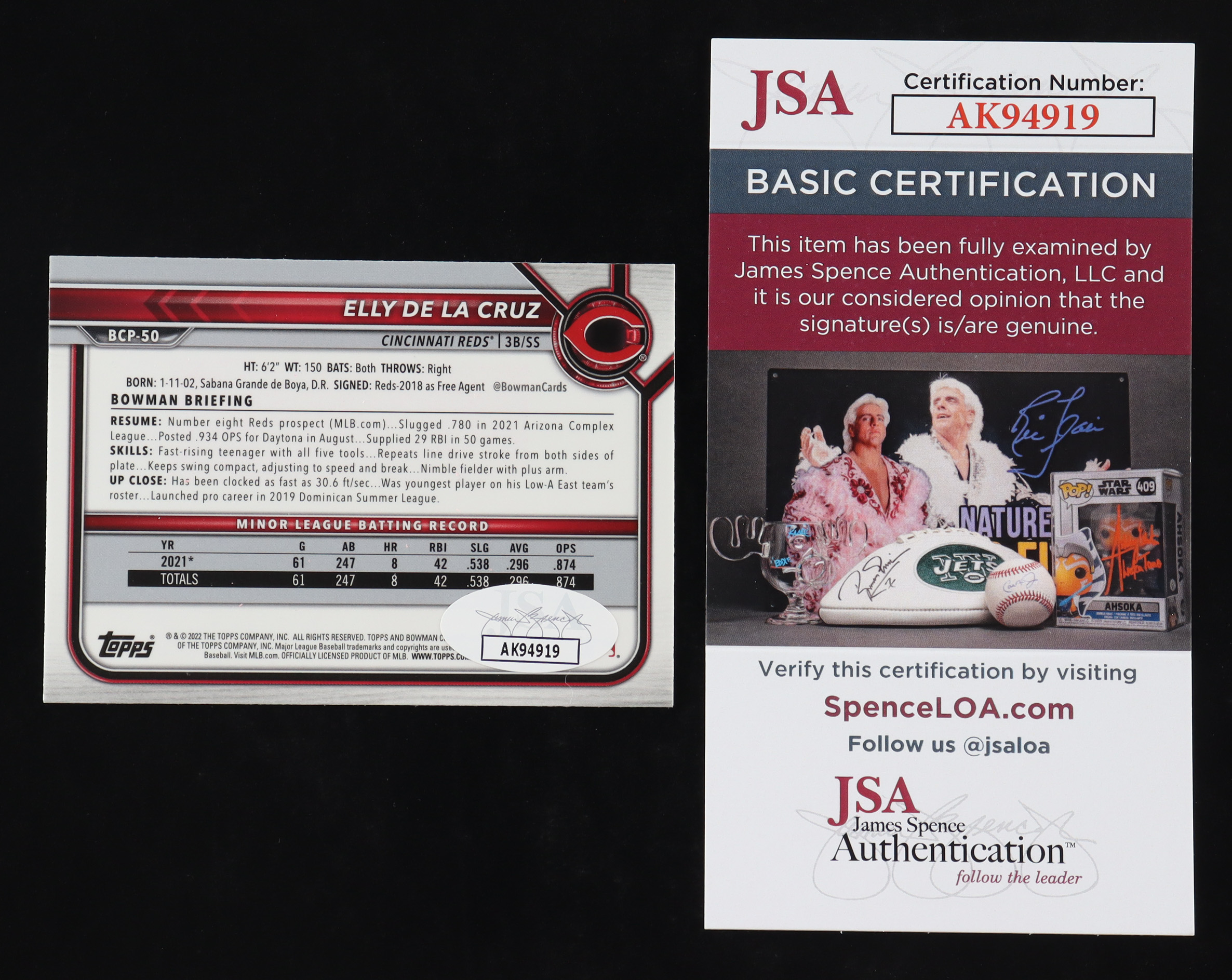 Elly De La Cruz Signed 2022 Bowman Chrome Prospects #BCP50 RC (JSA)