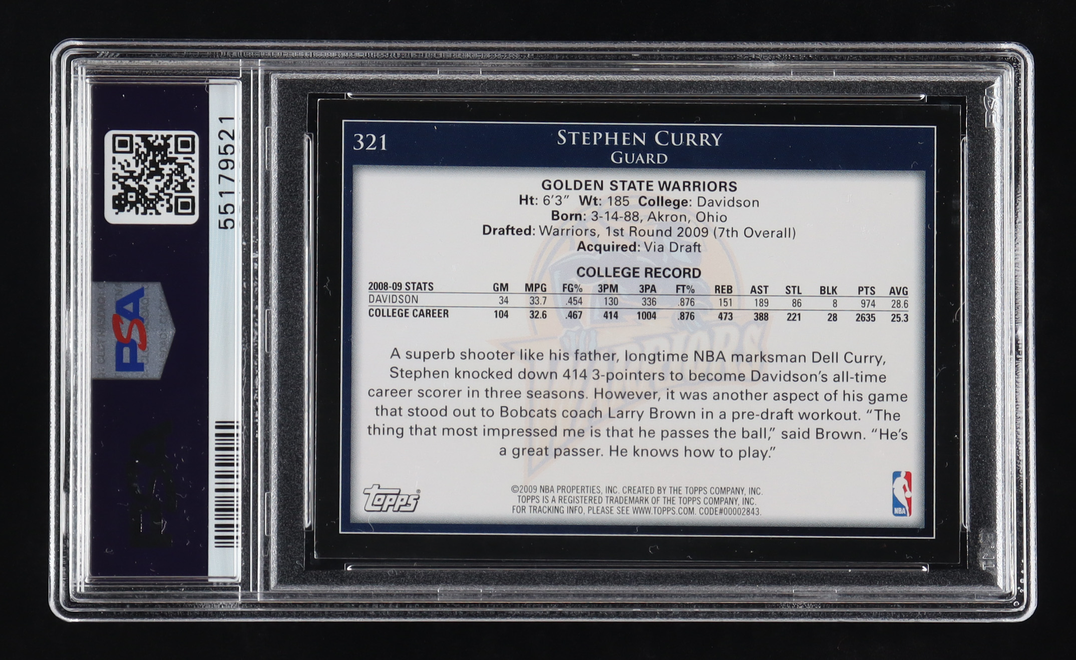 Stephen Curry 2009-10 Topps #321 RC (PSA 8)