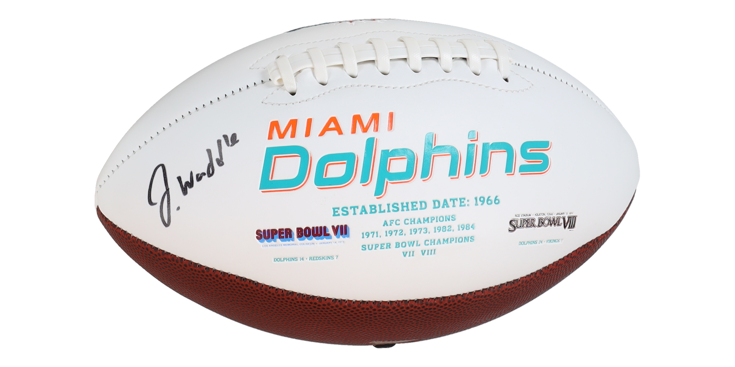 Miami Dolphins logo football. Hand-signed by Jaylen Waddle.