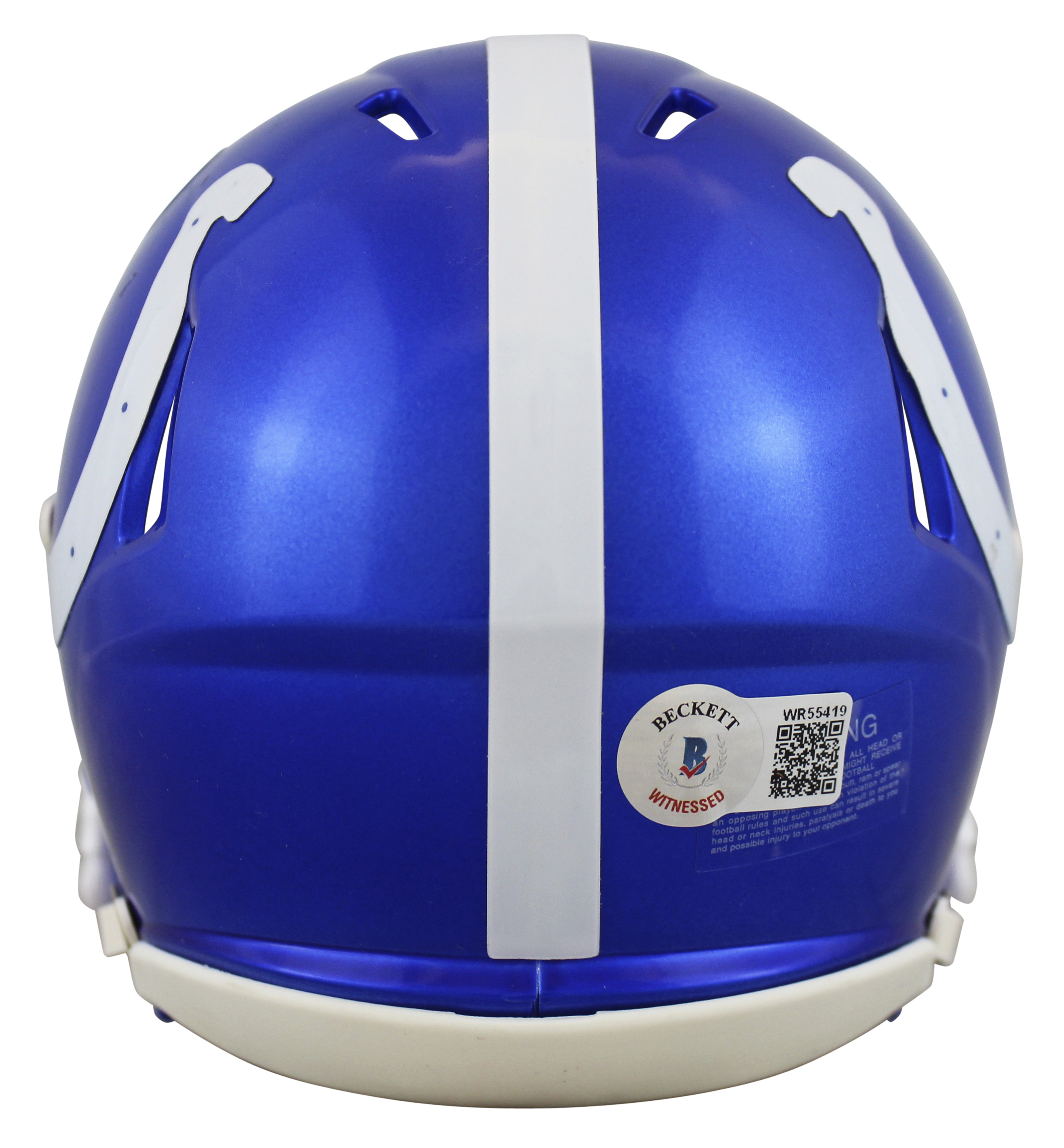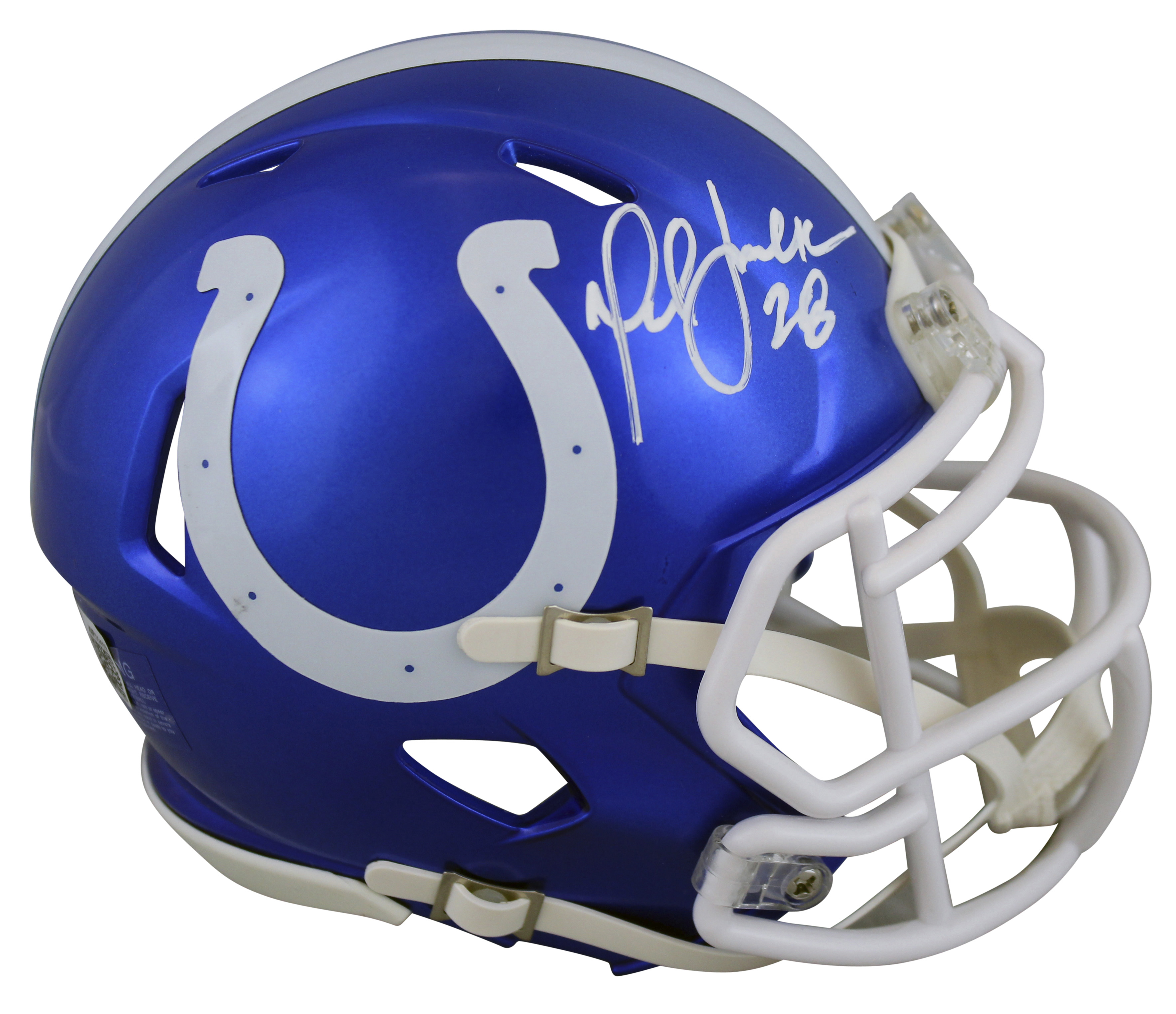 Riddell Indianapolis Colts flash alternate speed mini helmet. Hand-signed by Marshall Faulk (HOF).