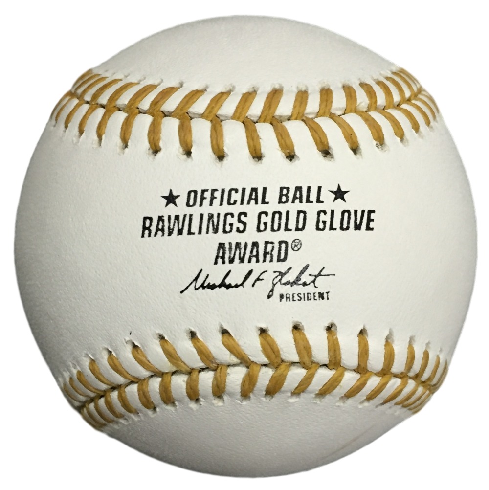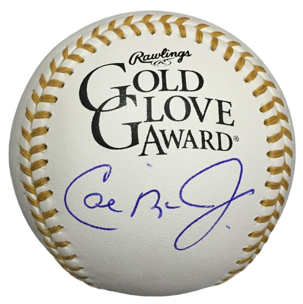Rawlings Official Gold Glove Award Baseball. Hand-signed and in blue ink pen by Cal Ripken Jr (Orioles HOF).