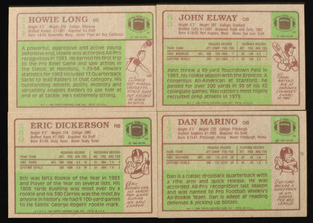 1984 Topps Football Complete Set of (396) Cards with John Elway #63 RC, Dan Marino PB #123 RC, Howie Long PB #111 RC, Dan Marino IR #124