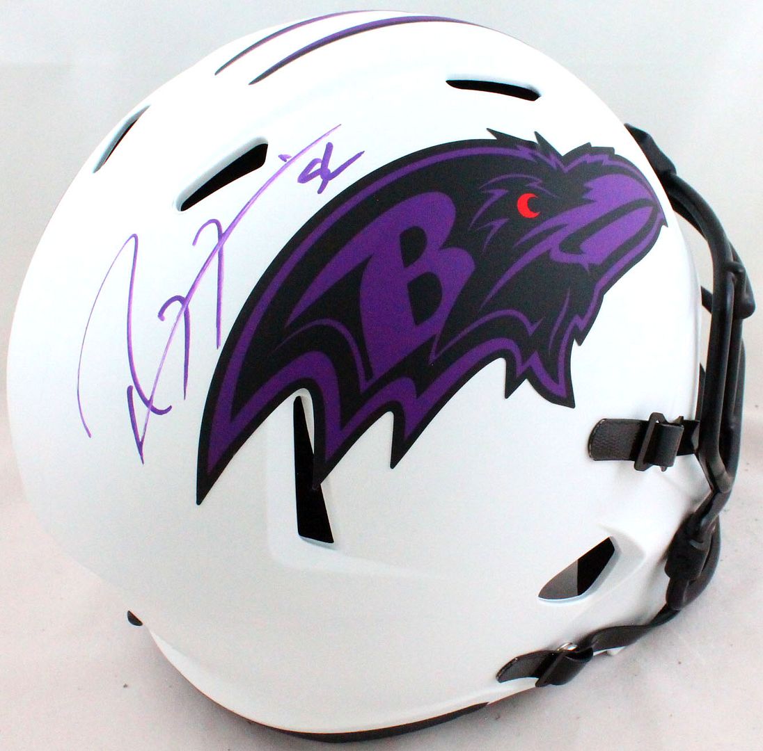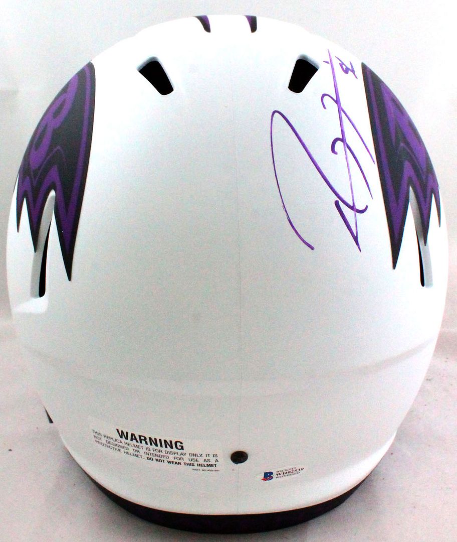 Riddell Baltimore Ravens full-size replica lunar eclipse alternate speed helmet. Hand-signed by Ray Lewis (HOF).