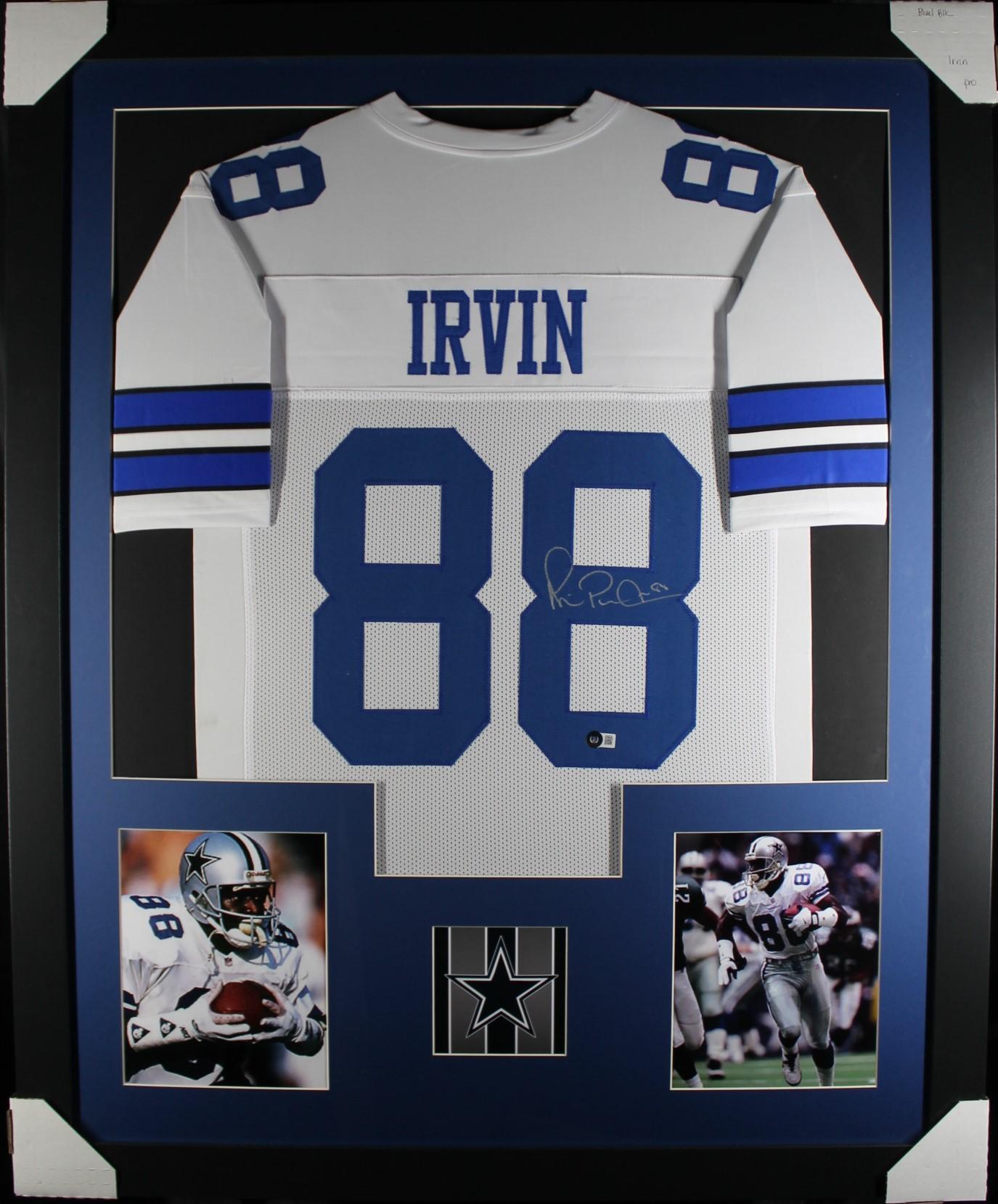 Custom frame measures 35" x 43" in size and features a jersey that has been hand-signed by Michael Irvin (HOF).