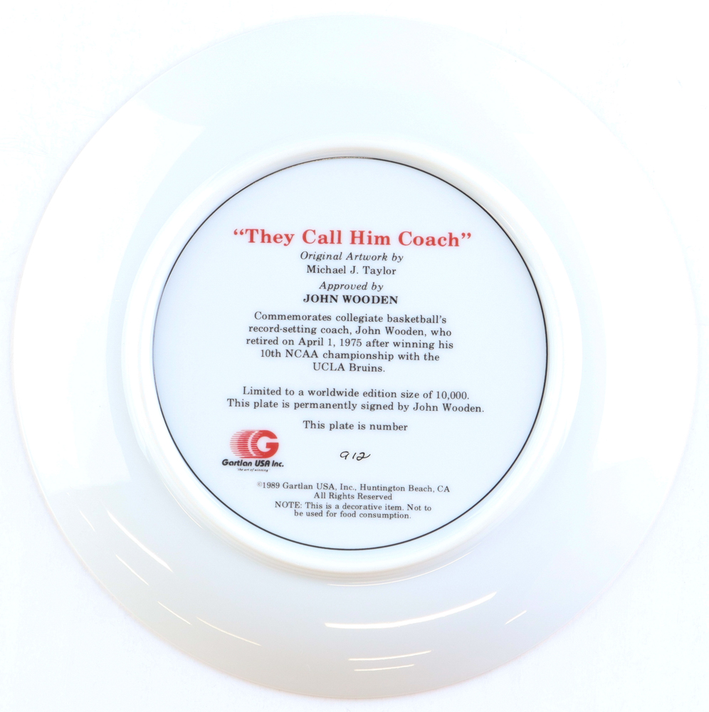 1989 Gartlan Porcelain Plate with facsimile signature from John Wooden (UCLA Bruins, HOF). The plate is limited edition and has been numbered #912/10,000.