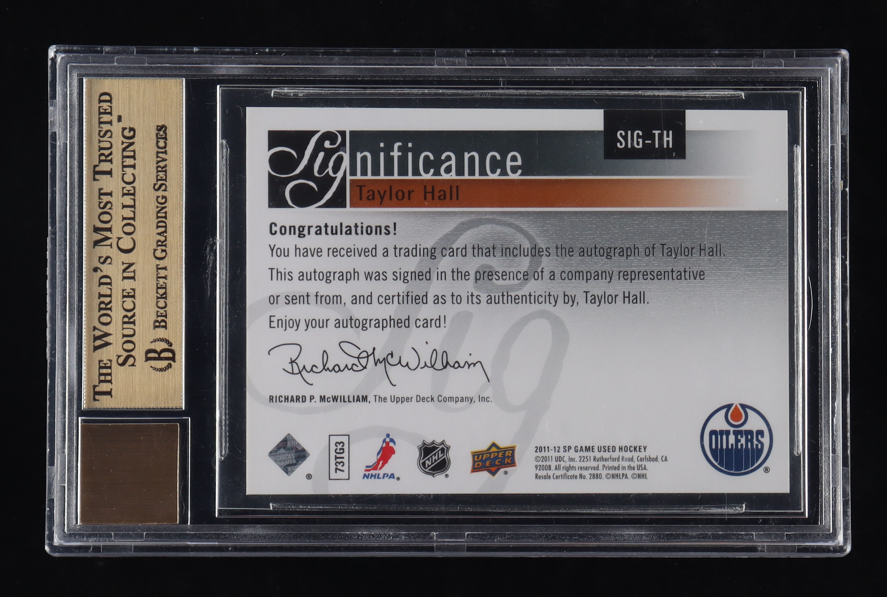 Taylor Hall 2011-12 SP Game Used SIGnificance #SIGTH #24/50 (BGS 9.5 | Auto 10)