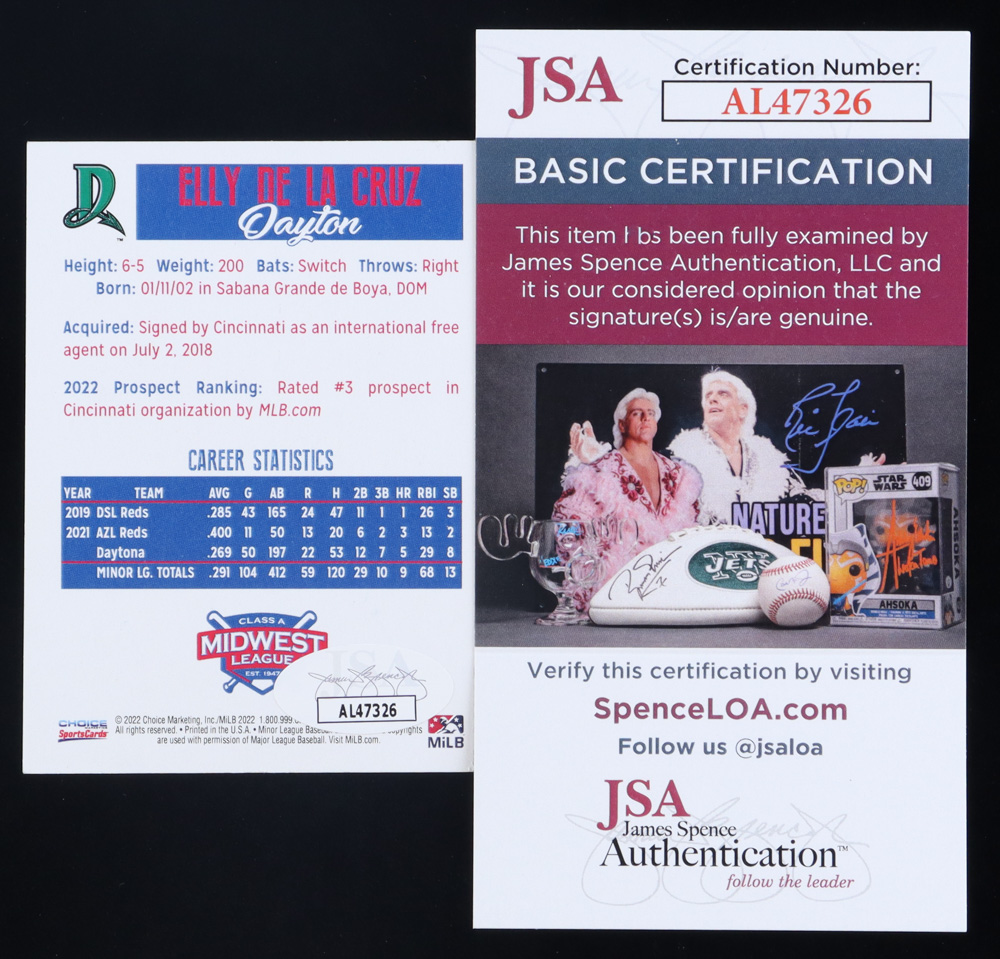 Elly De La Cruz Signed 2022 Choice Midwest League Top Prospects #NNO (JSA)