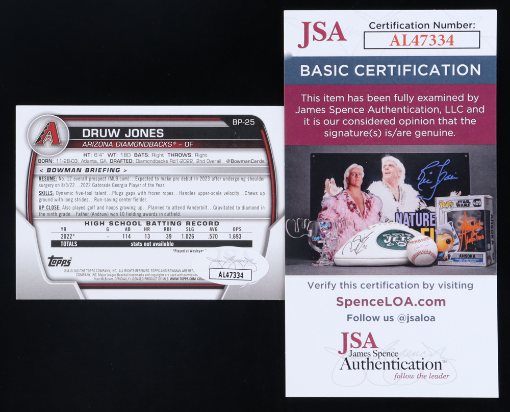 Druw Jones Signed 2023 Bowman Prospects #BP25 (JSA)