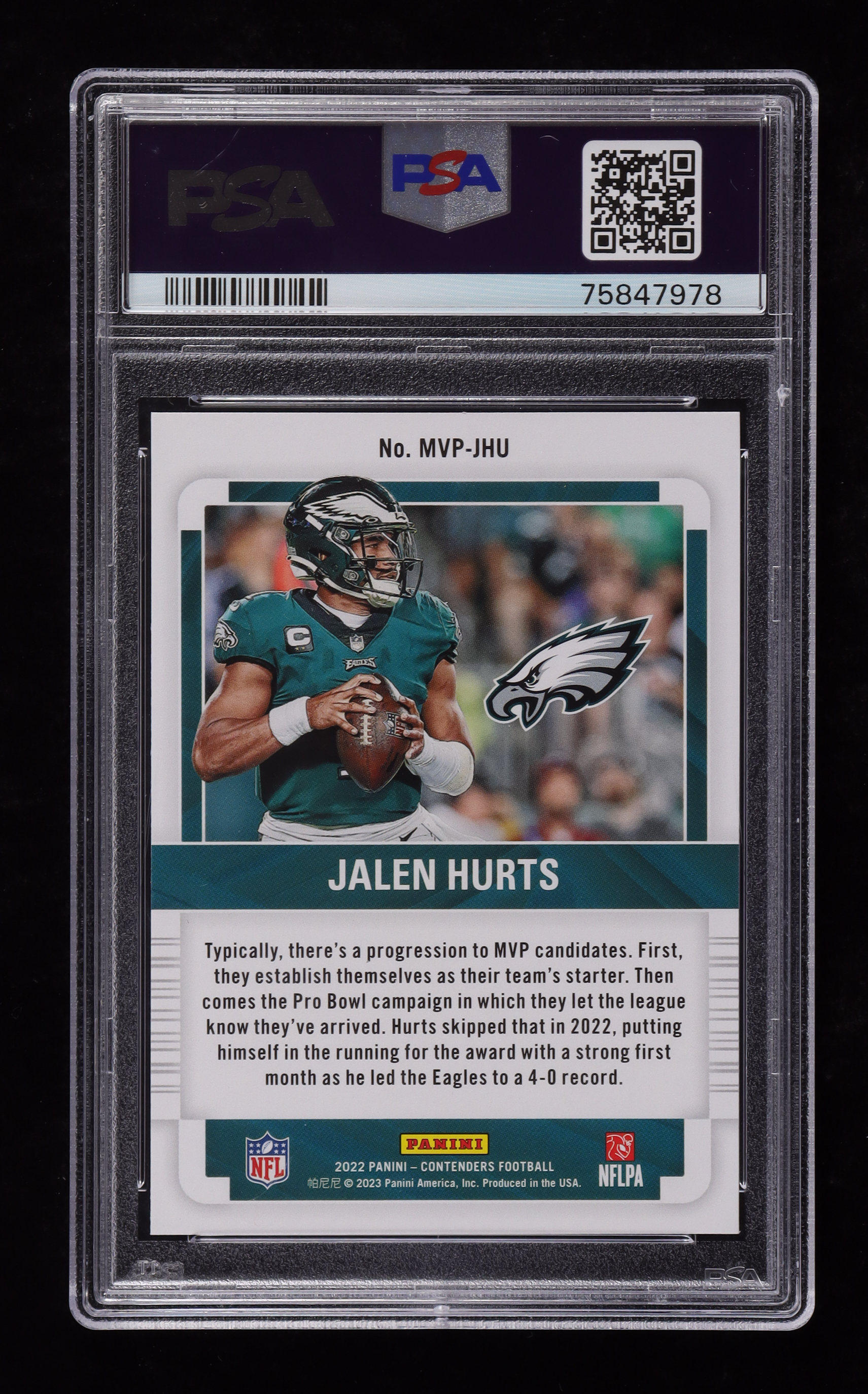Jalen Hurts 2022 Panini Contenders MVP Contenders #5 (PSA 10)