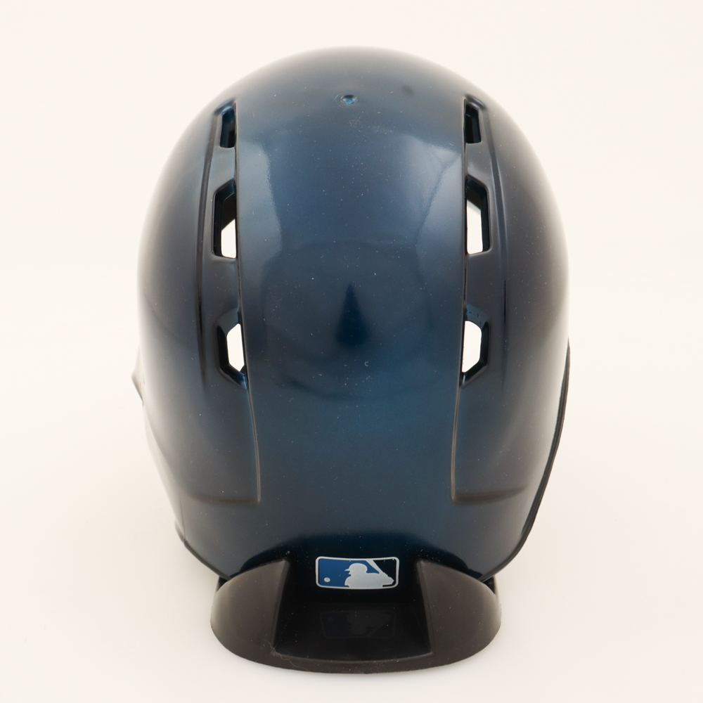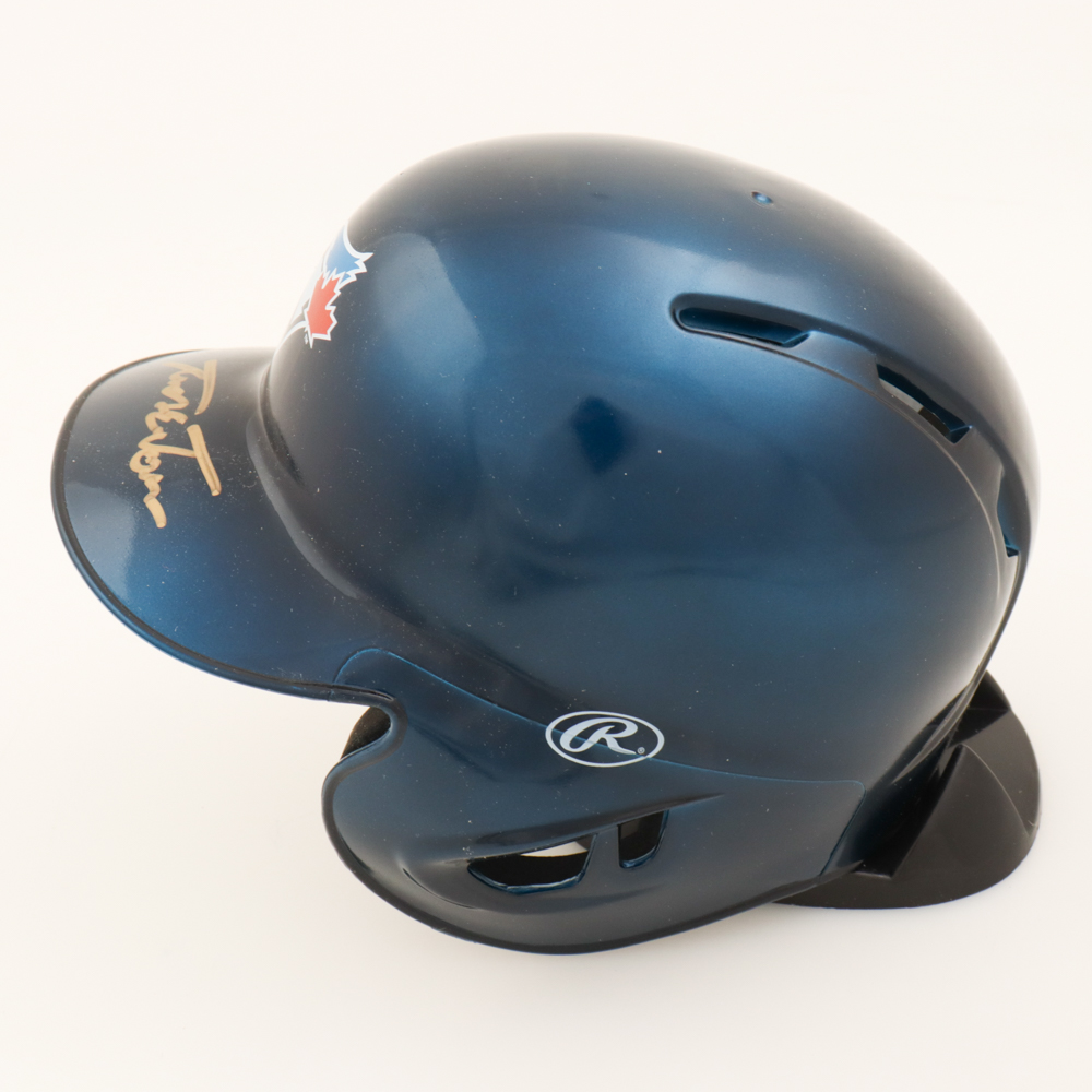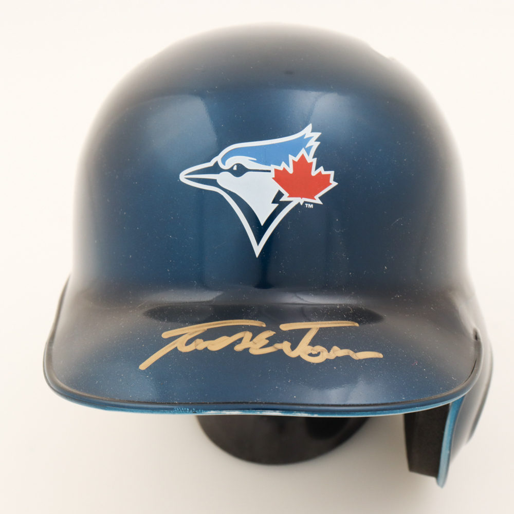 Rawlings Toronto Blue Jays mini batting helmet. Hand-signed by Tucker Toman.