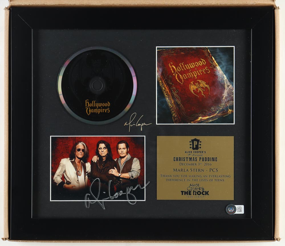 Alice Cooper Signed "Hollywood Vampires" 2016 15th Annual Christmas Pudding Custom Framed CD Display with Original Packaging (Beckett)