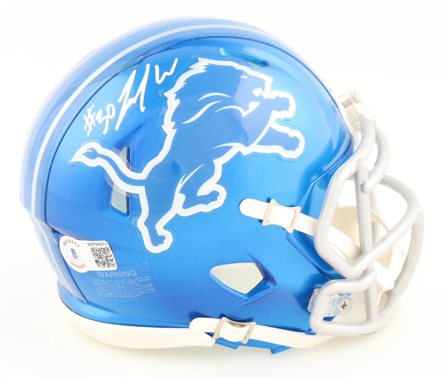 Riddell Detroit Lions flash alternate speed mini helmet. Hand-signed by Jamaal Williams.