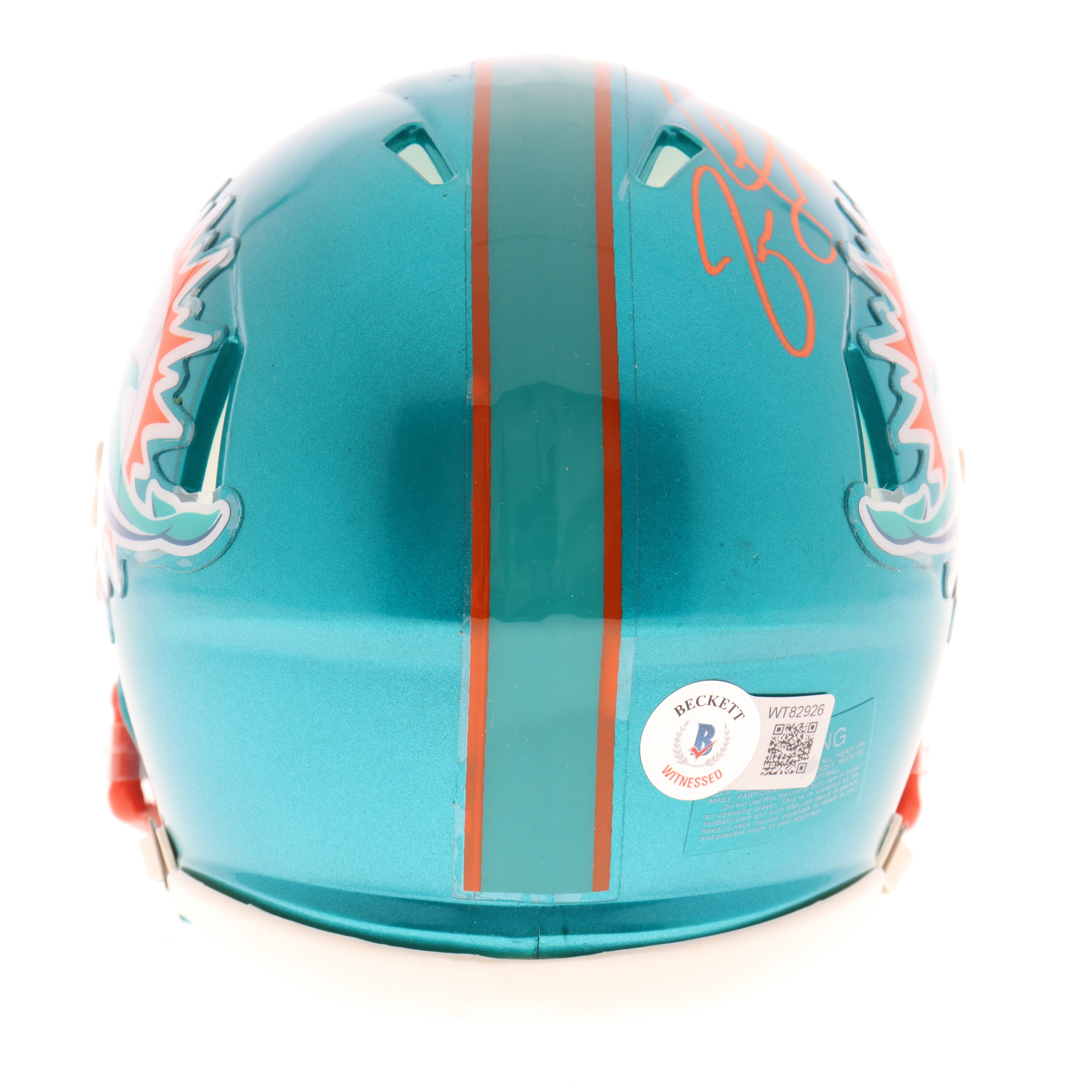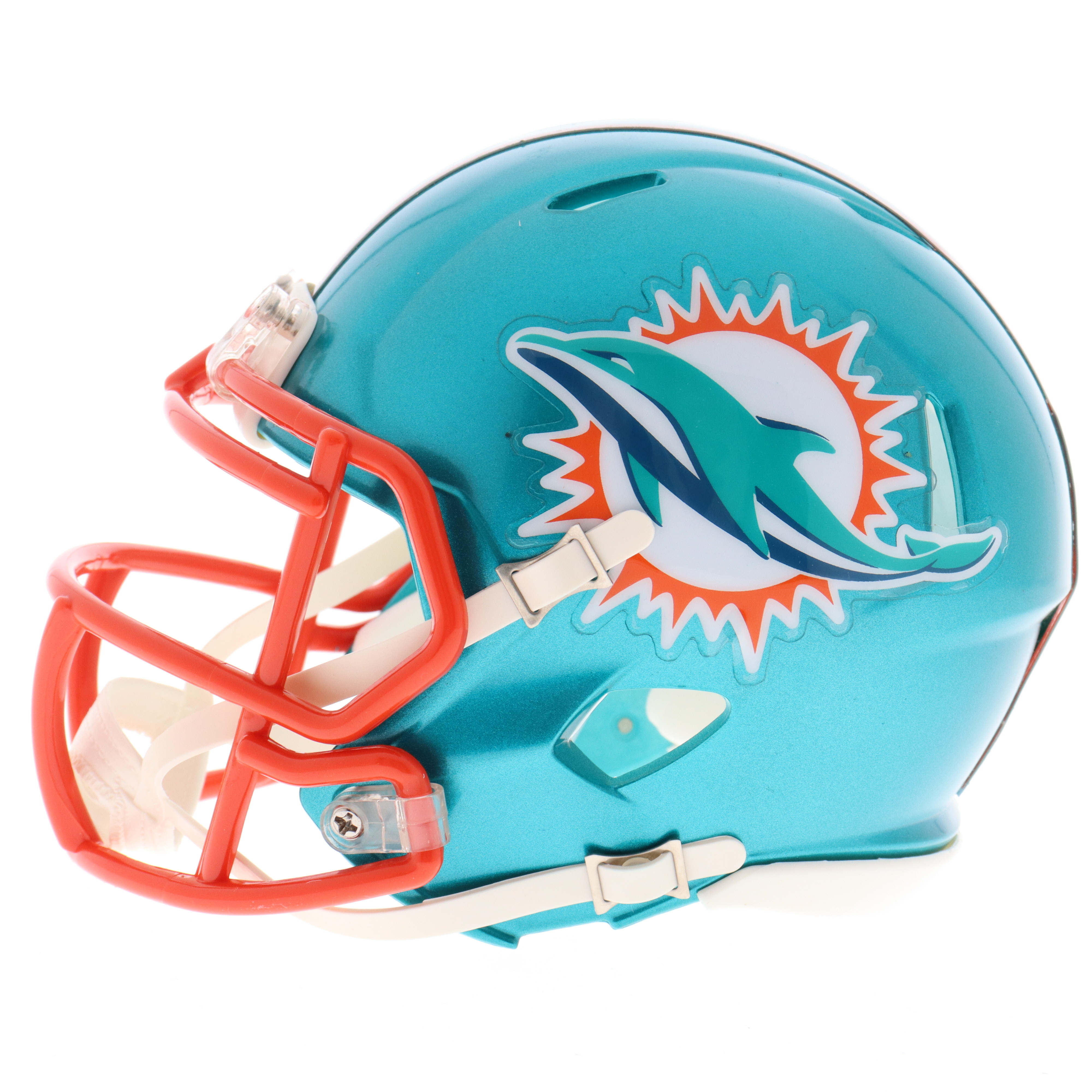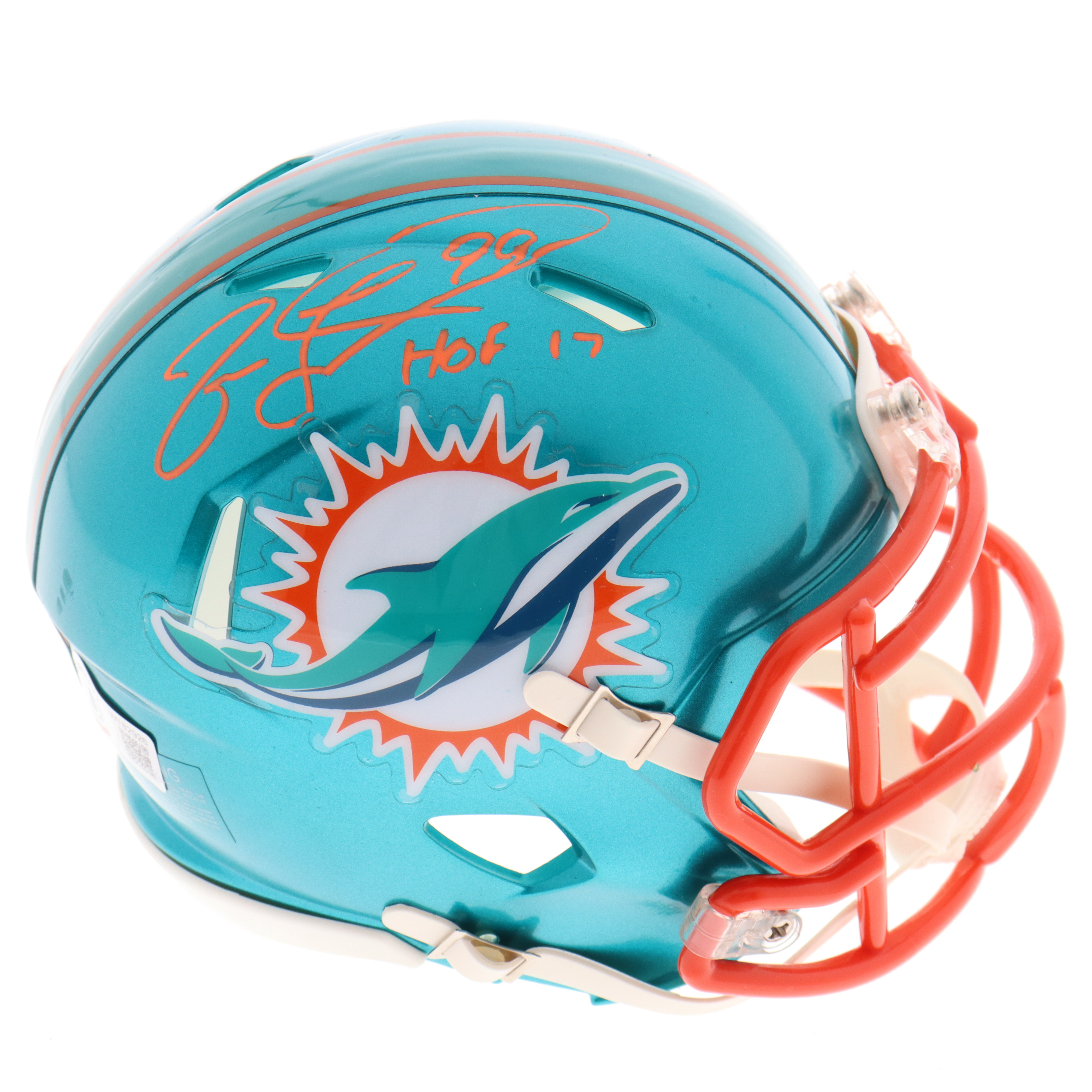 Riddell Miami Dolphins Flash alternate speed mini helmet. Hand-signed and inscribed by Jason Taylor (HOF).