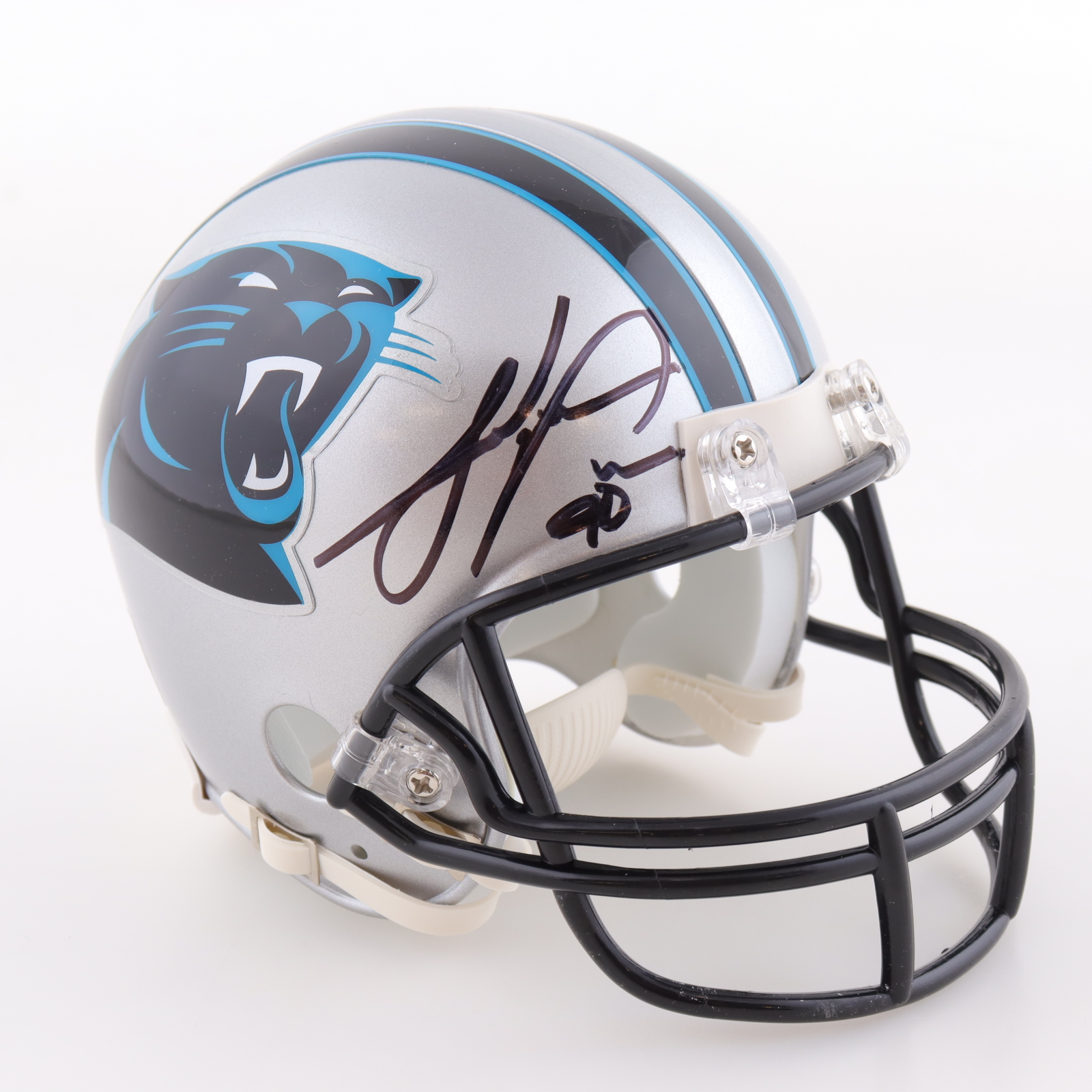 Riddell Carolina Panthers mini helmet. Hand-signed by Julius Peppers.