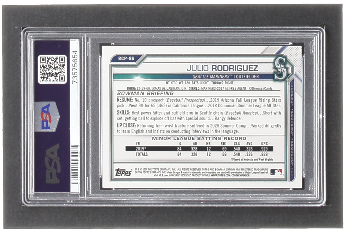 Julio Rodriguez 2021 Bowman Chrome Sapphire Prospects #BCP86 (PSA 9)