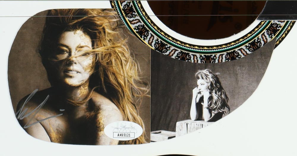 Guitar measures 38” in size has been hand-signed on the pick-guard by Shania Twain.