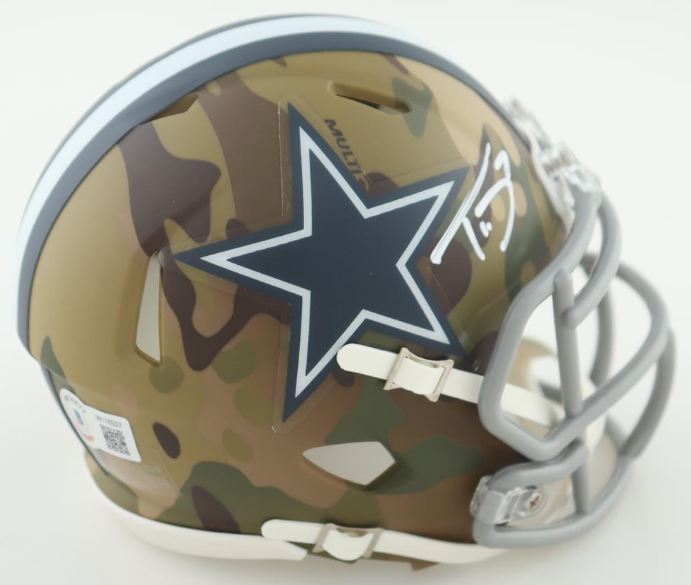 Riddell Dallas Cowboys Camo Alternate Speed Mini Helmet has been hand-signed by Trevon Diggs.
