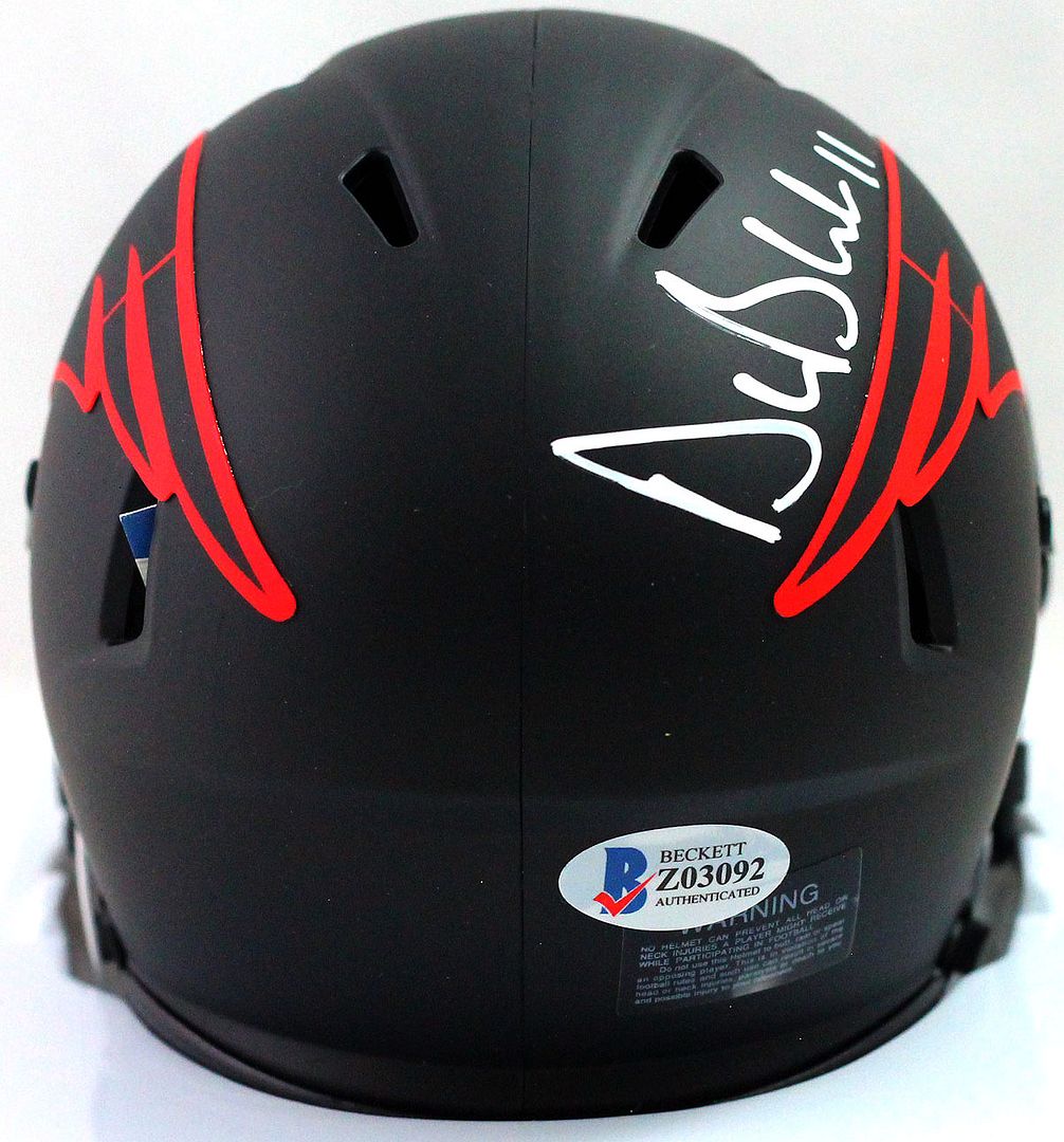Riddell New England Patriots Eclipse Alternate Speed mini helmet has been hand-signed by Drew Bledsoe.