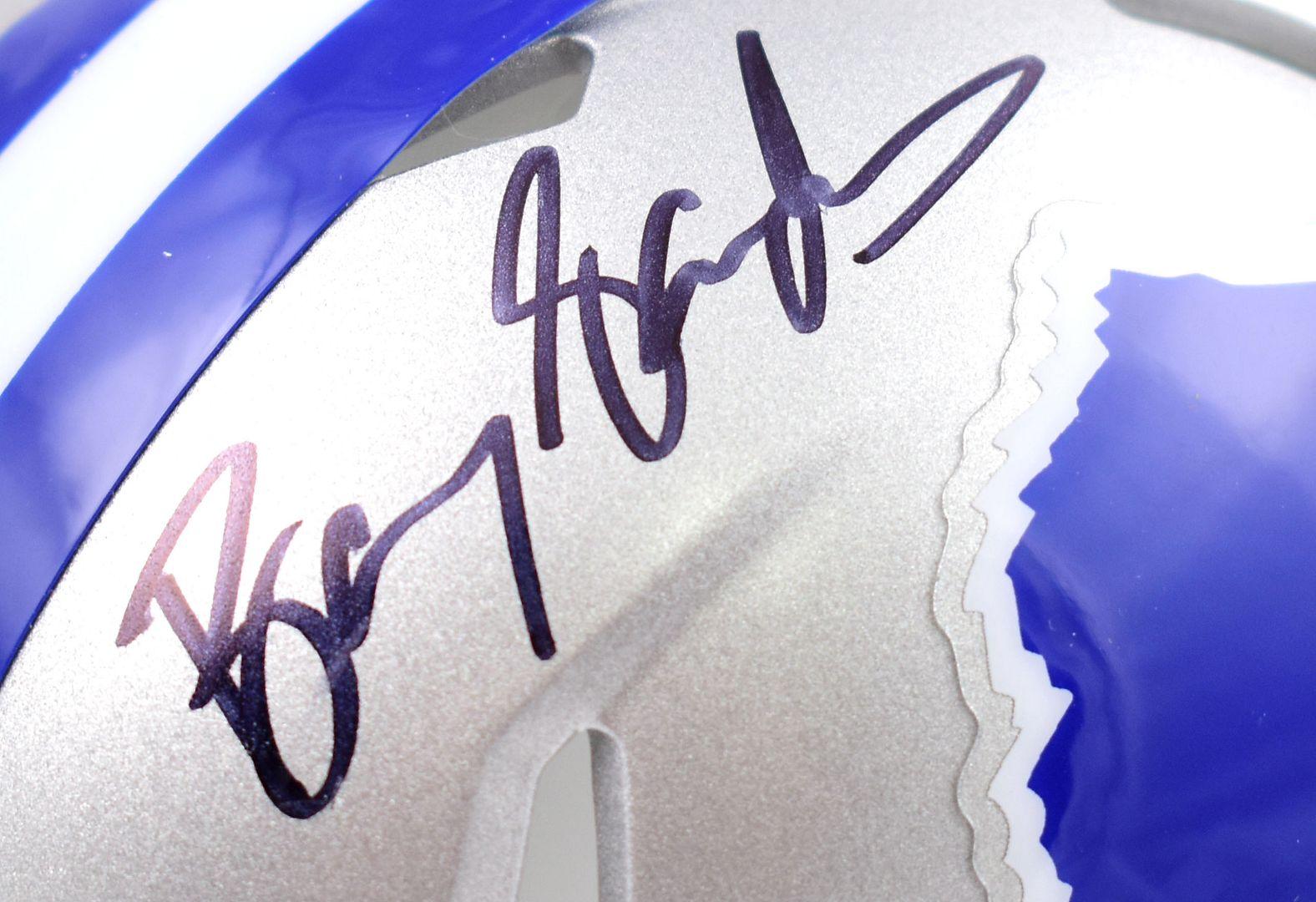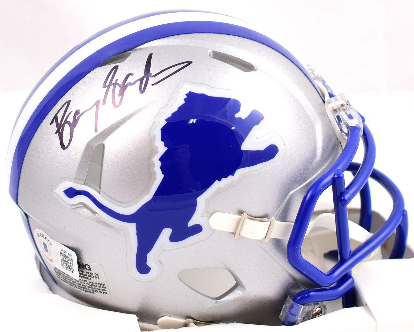 Riddell Detroit Lions throwback Speed mini helmet. Hand-signed by Barry Sanders (HOF).