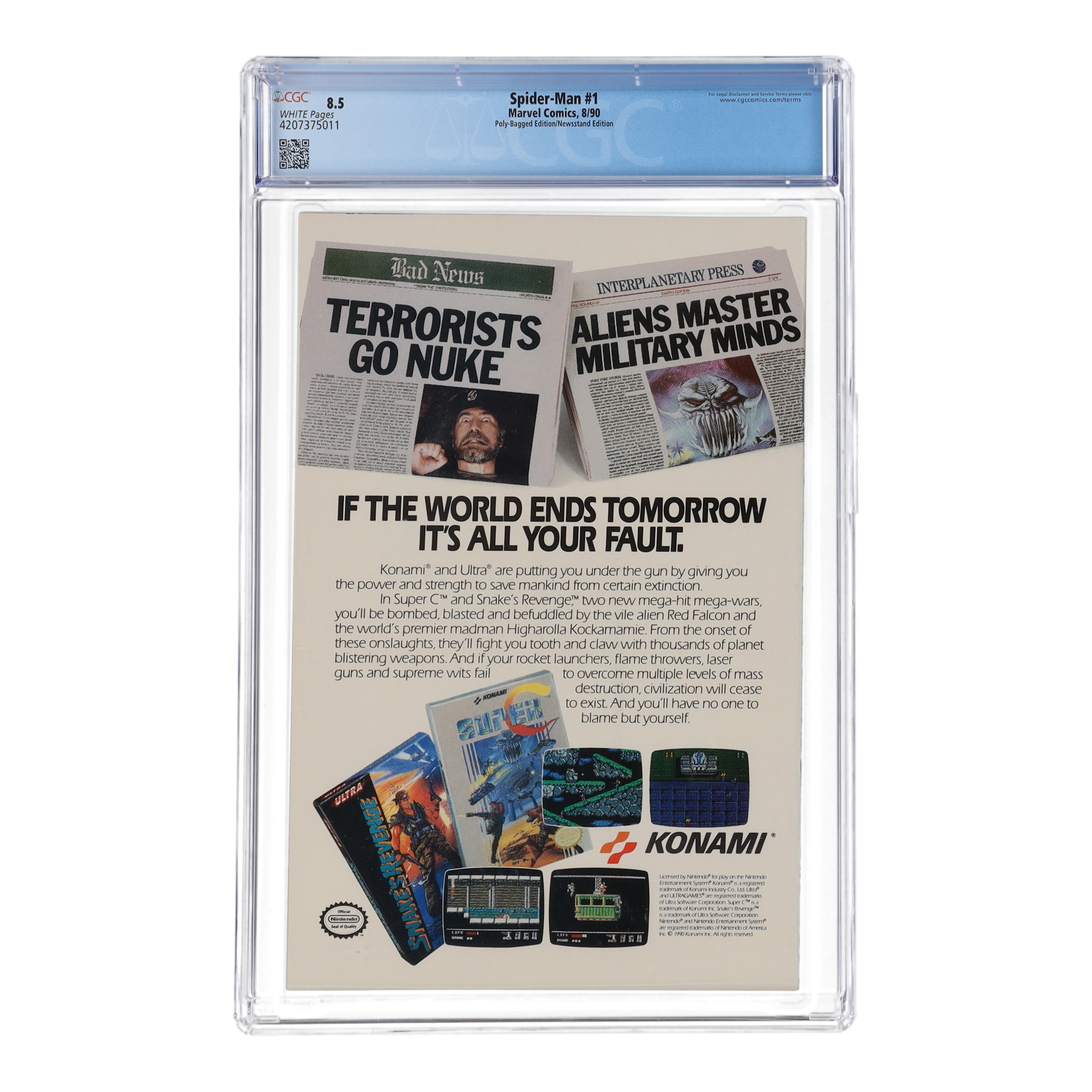 August 1990 "Spiderman: Torment" Issue #1 Marvel Comic Book. Comic book has been graded CGC 8.5.