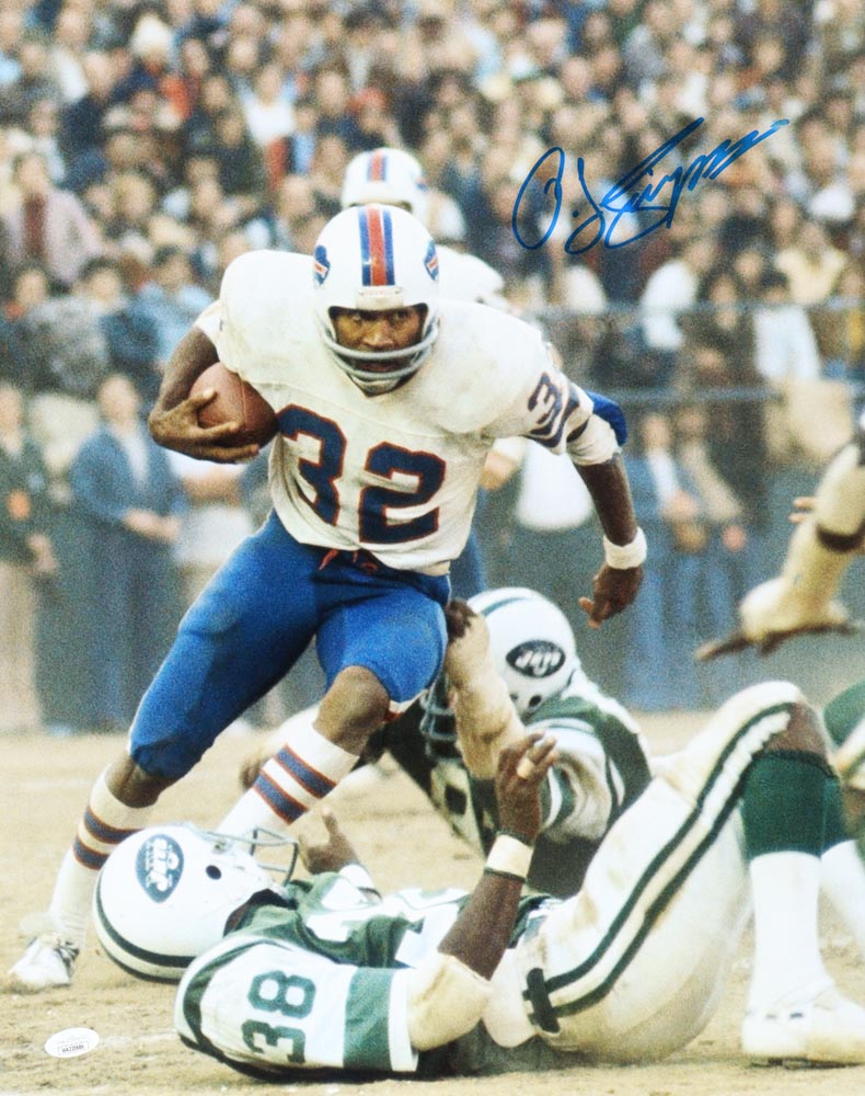 Photo measures 16" x 20" in size and has been hand-signed by O.J. Simpson (Buffalo Bills, HOF).