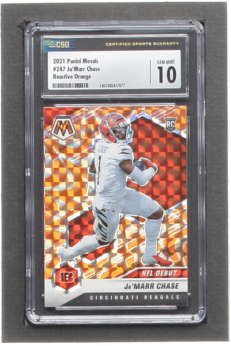 Ja'Marr Chase 2021 Panini Mosaic Mosaic Reactive Orange #247 DEB RC (CSG 10)