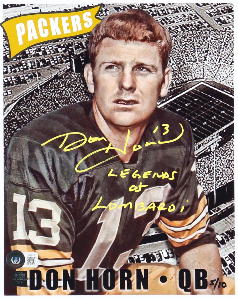 Photo measures 8" x 10" in size and has been hand-signed and inscribed by Don Horn (Green Bay Packers). Photo is limited edition and numbered #5/10.