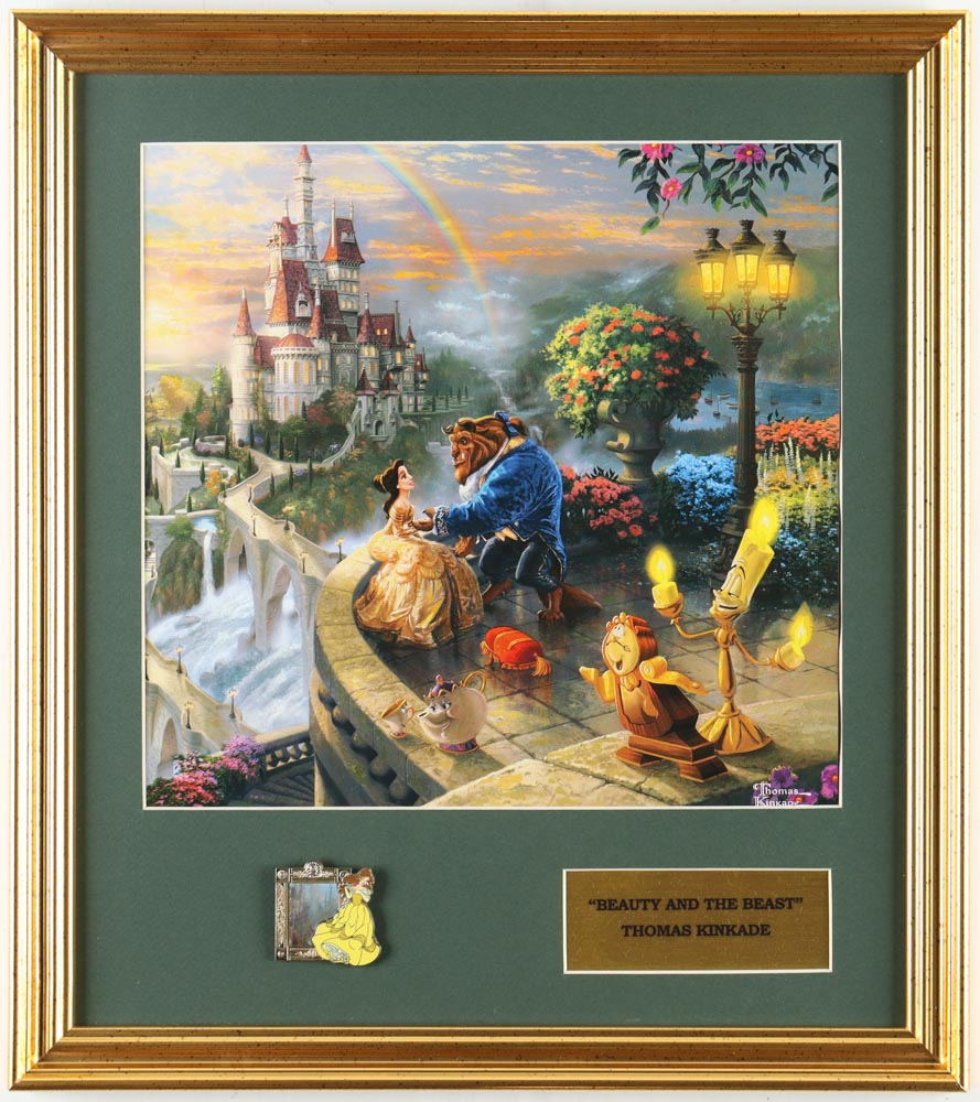 Thomas Kinkade Walt Disney's "Beauty and the Beast" Custom Framed Print Display with Character Pin