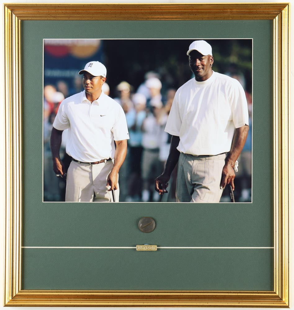 Michael Jordan & Tiger Woods Custom Framed Photo with (2) Nike Pins