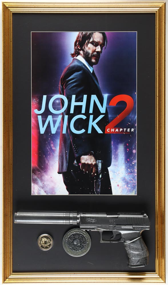 "John Wick Chapter 2" Custom Framed Movie Poster Display with Replica Prop Pistol & Adjudicator Coin & Blood Oath Marker
