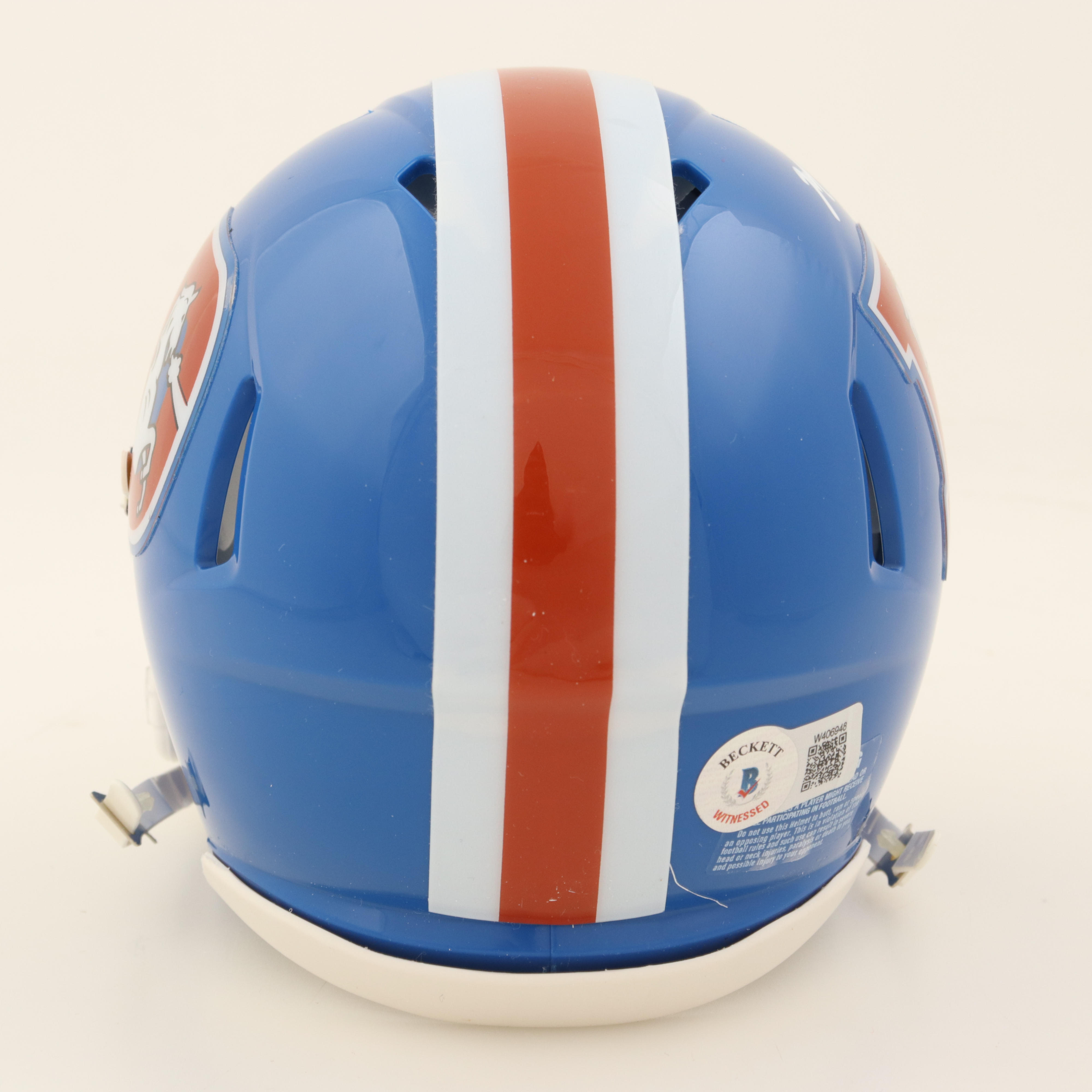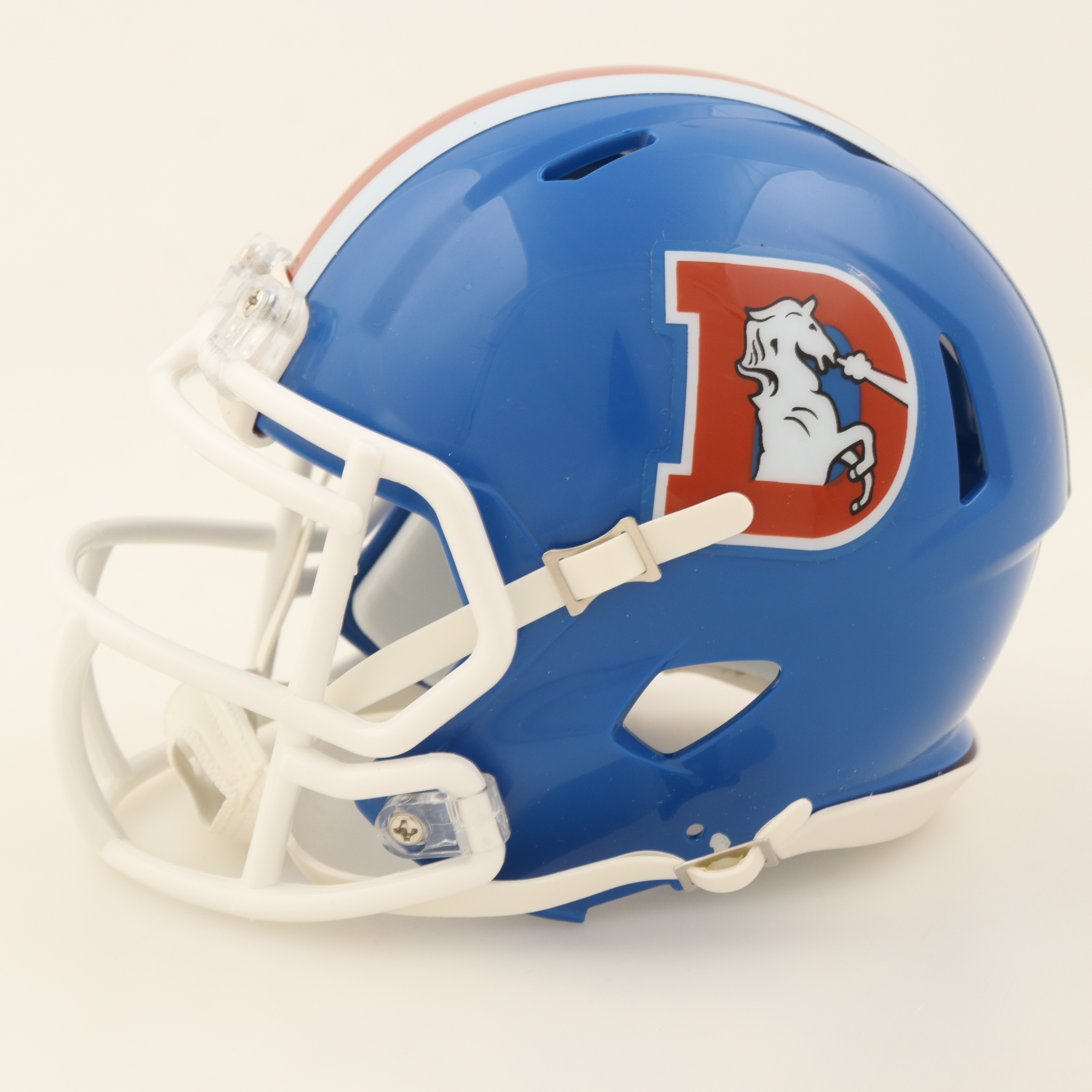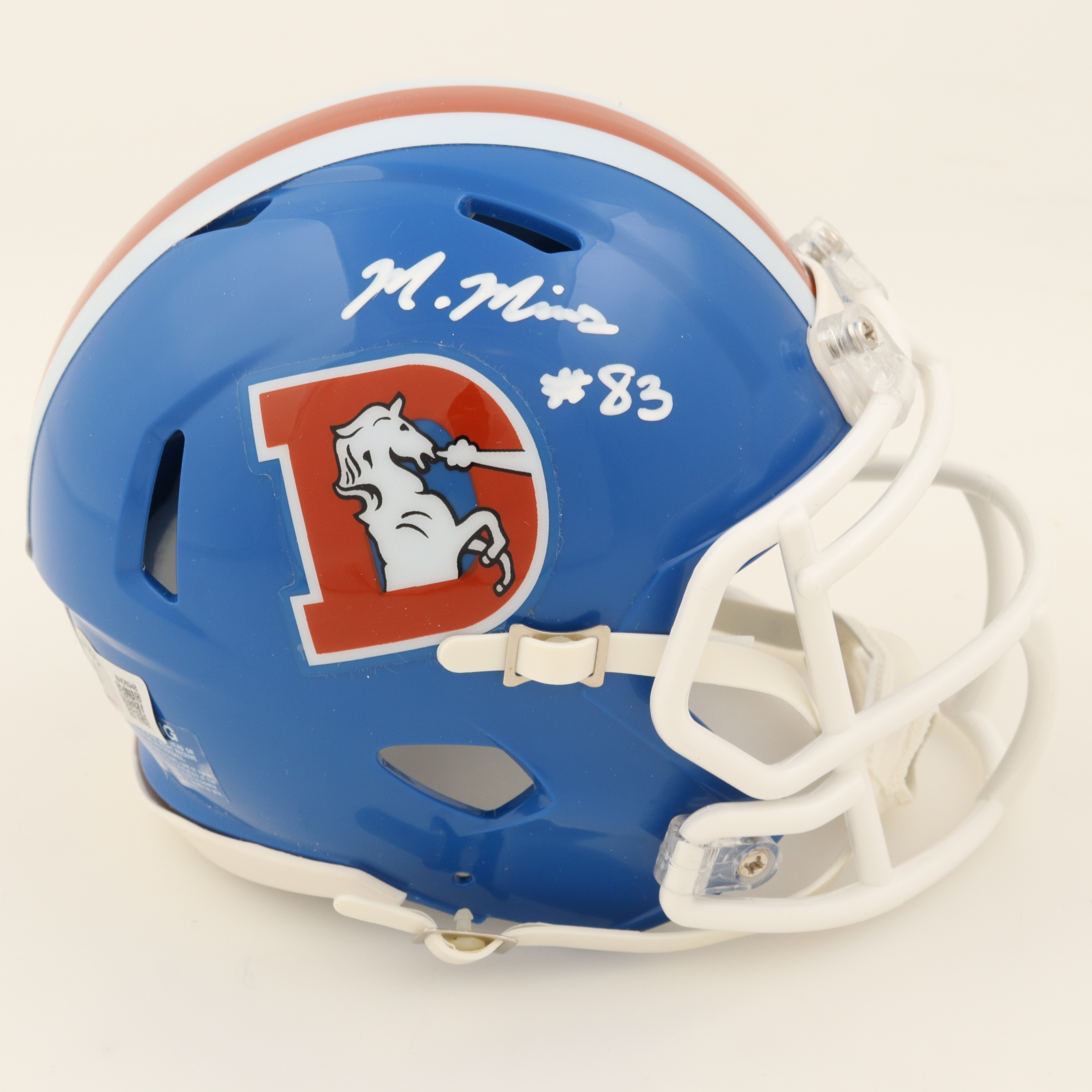 Riddell Denver Broncos speed mini helmet. Hand-signed by Marvin Mims.