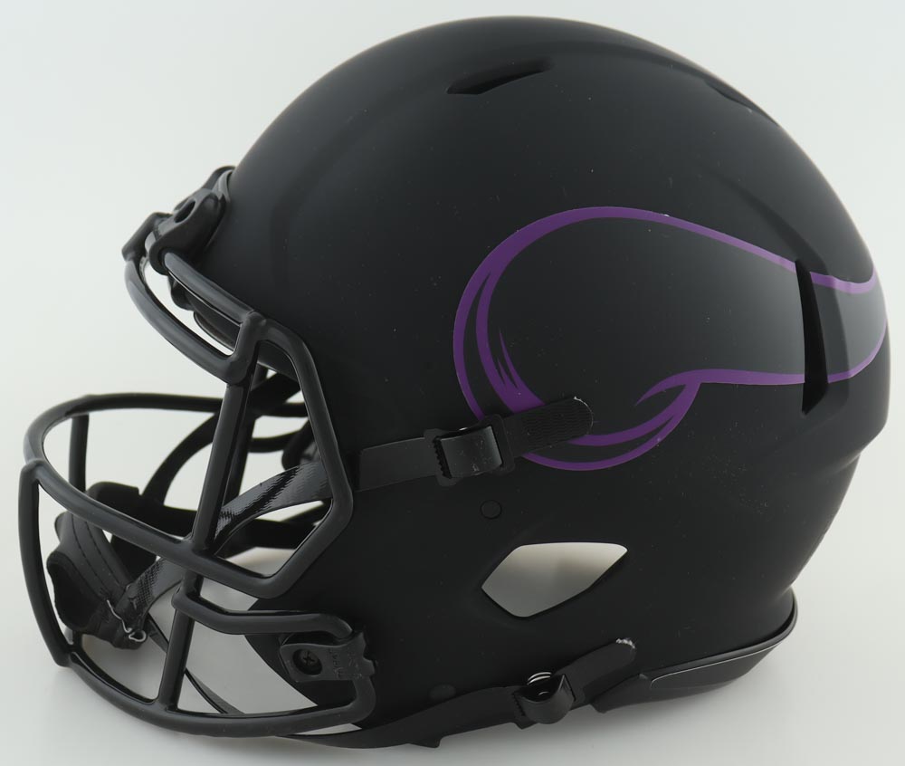 Riddell Minnesota Vikings Eclipse Alternate Authentic On-Field Full-Size Speed Helmet has been hand-signed by Justin Jefferson and Dalvin Cook