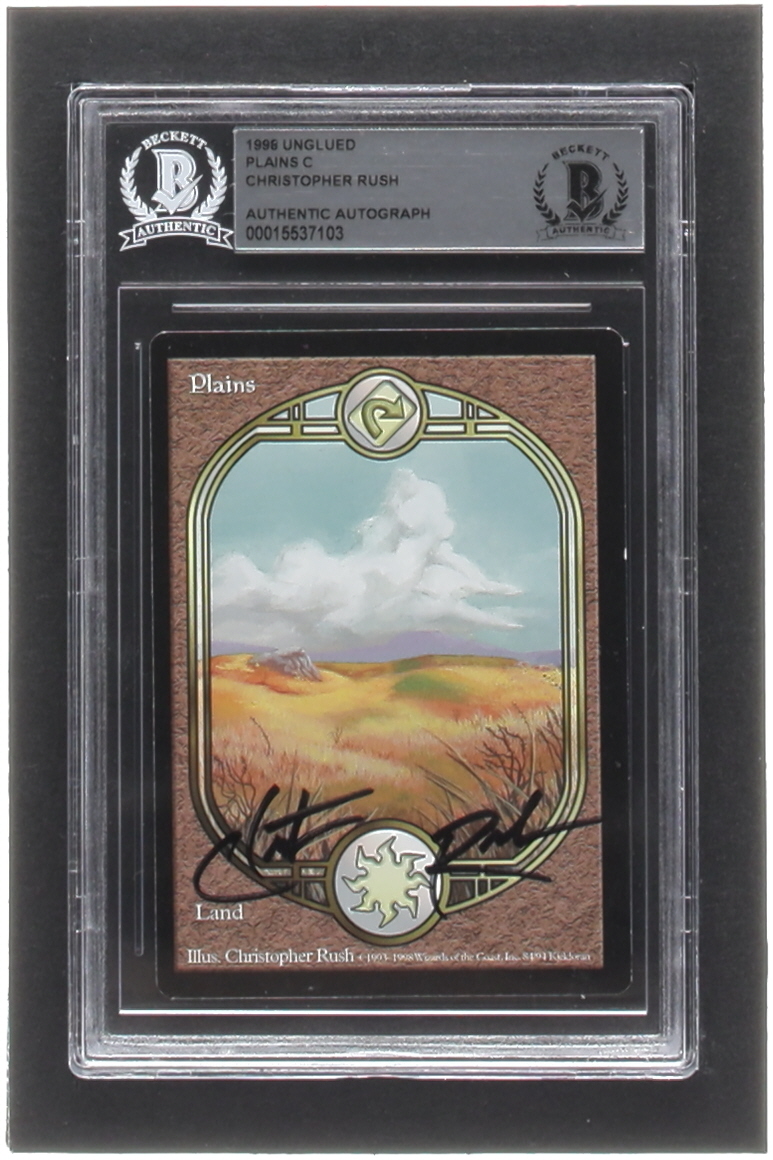 Christopher Rush Signed 1998 Magic The Gathering Unglued #84 Plains (BGS)