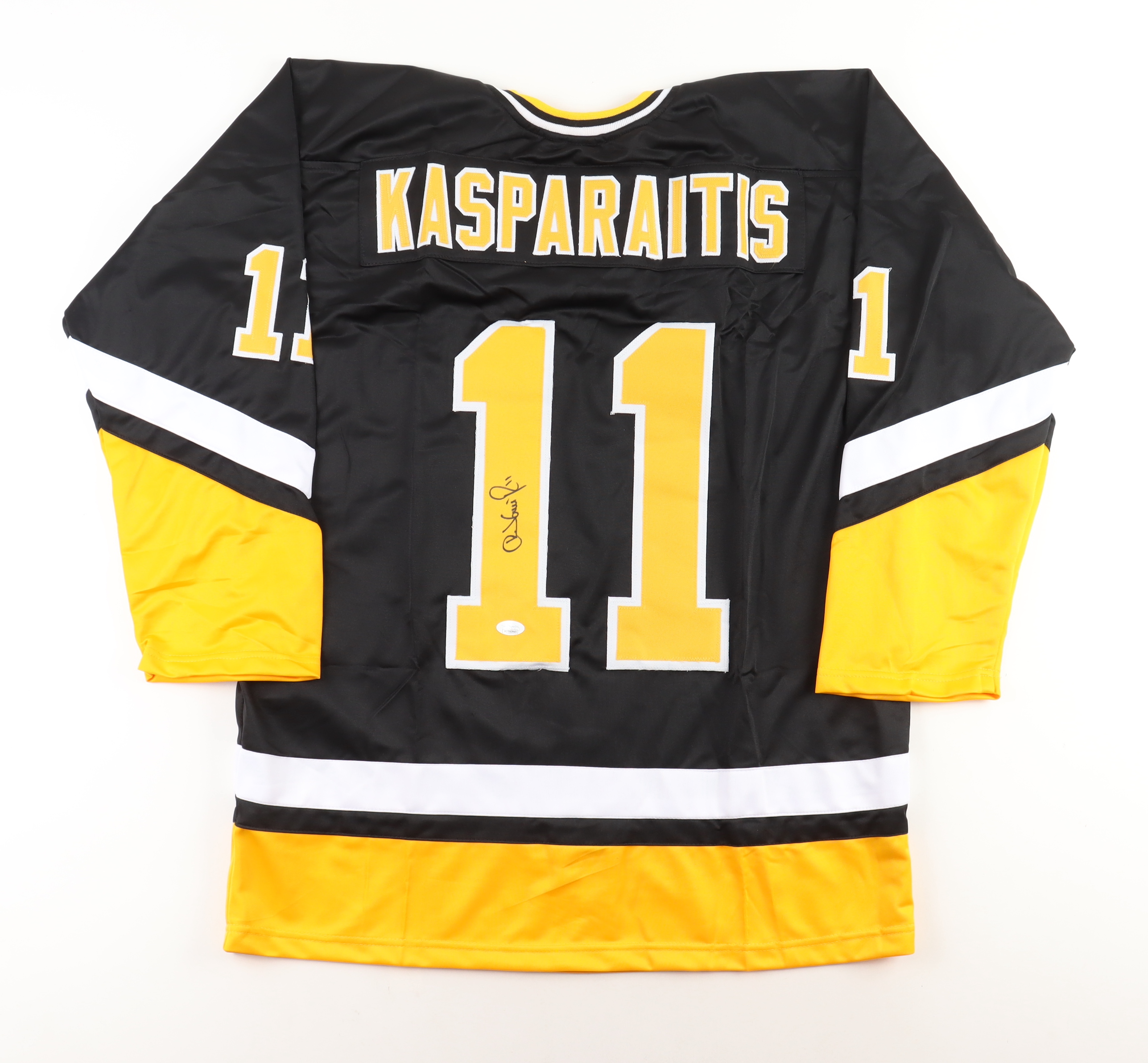 Custom jersey with everything sewn on, size XL. Hand-signed by Darius Kasparaitis.