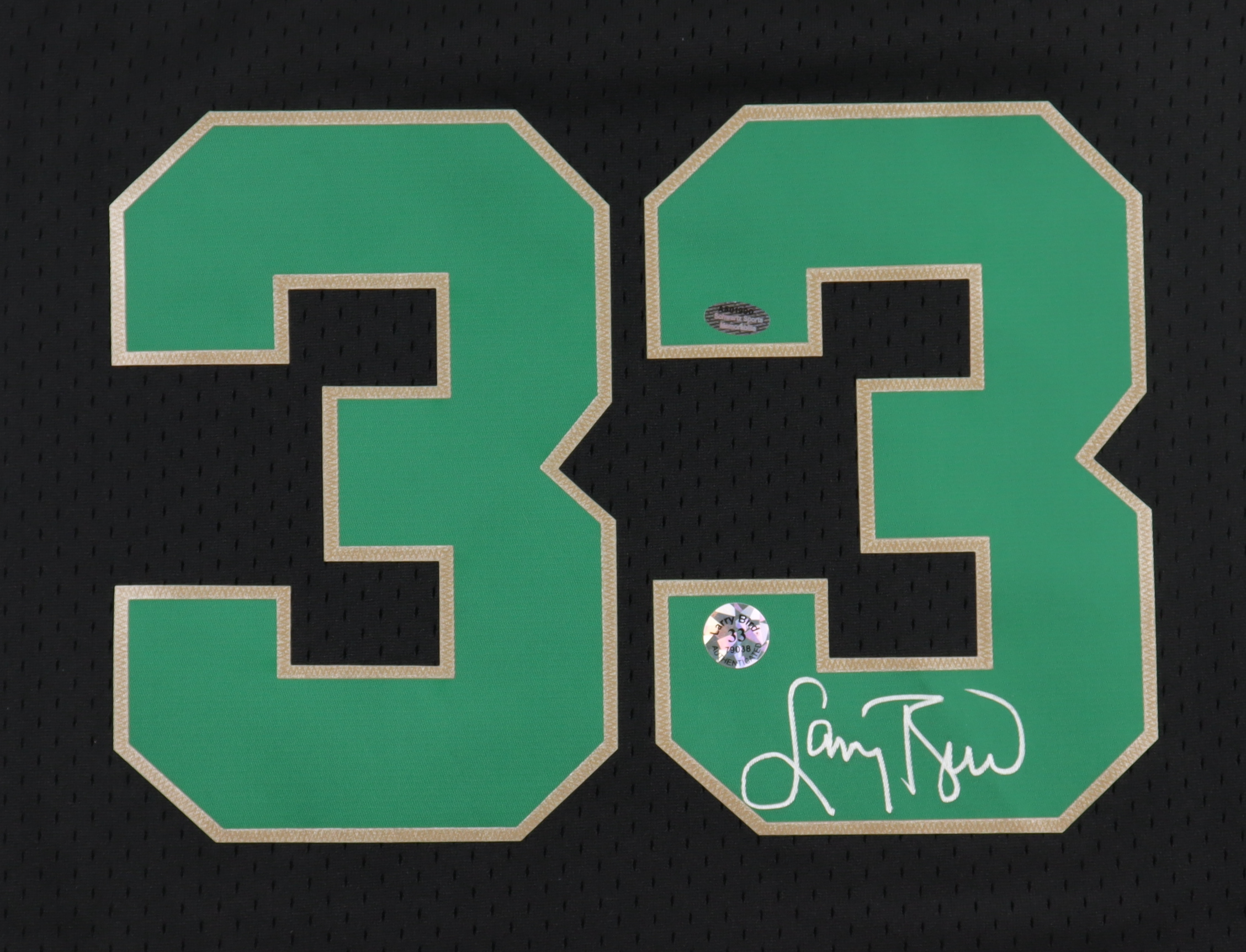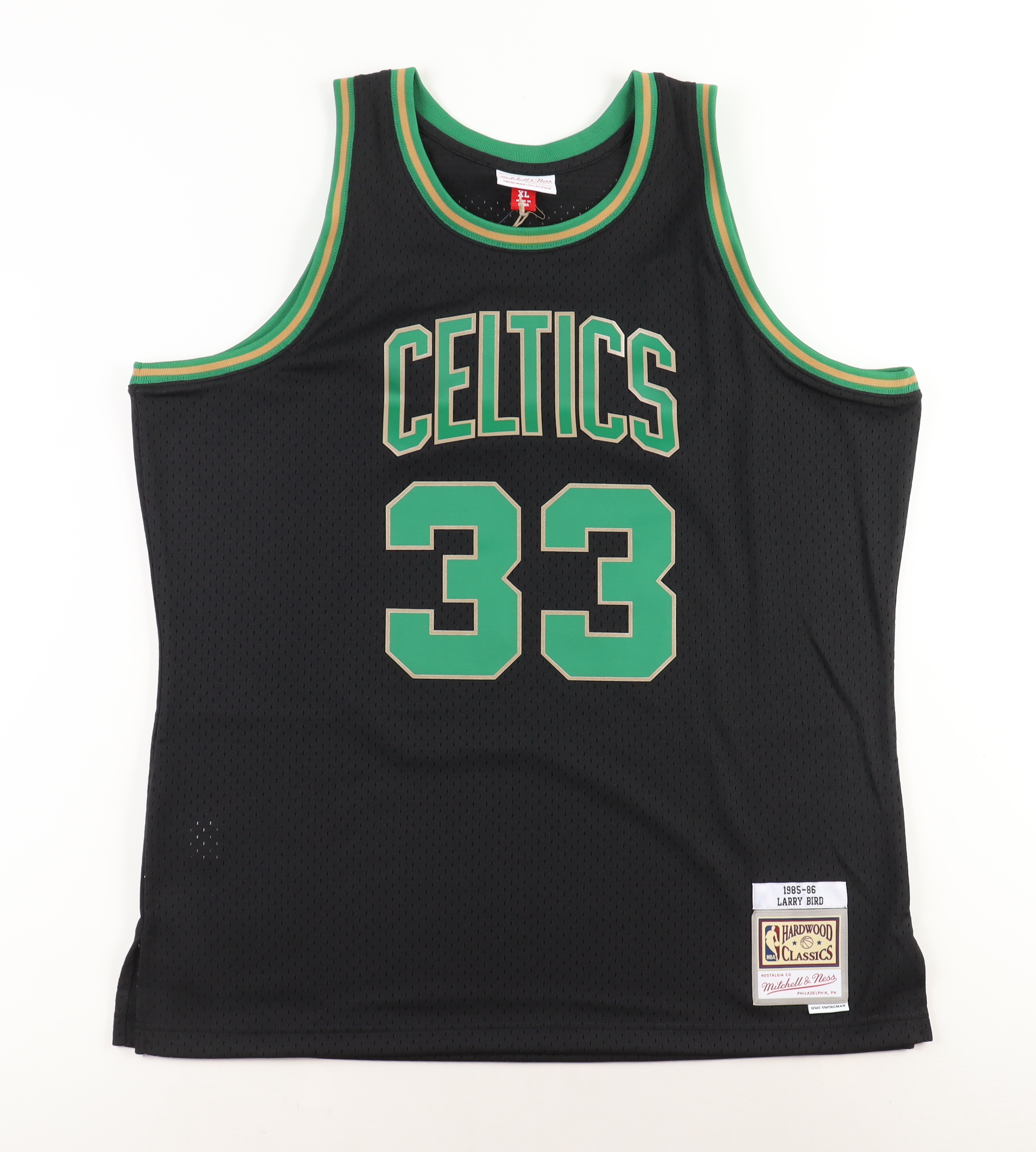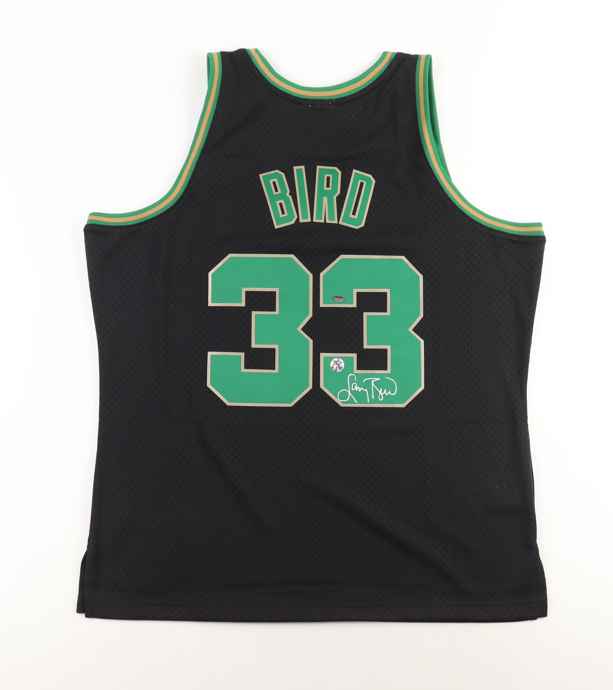 Mitchell & Ness jersey. Everything is sewn on, size XL. Hand-signed by Larry Bird (Boston Celtics, HOF).