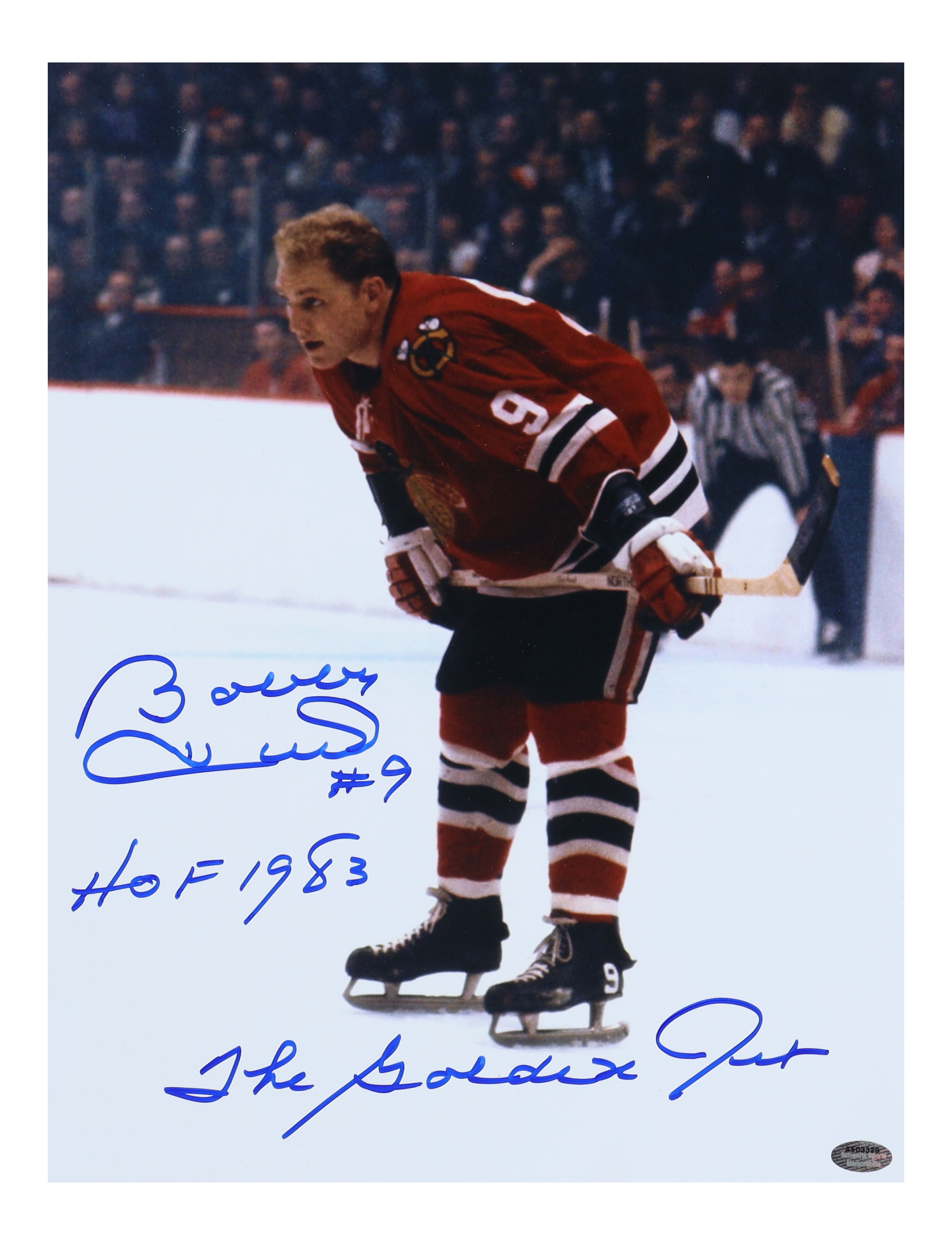 Bobby Hull Signed Blackhawks 11x14 Photo Inscribed "HOF 1983" & "The Golden Jet" (Schwartz)